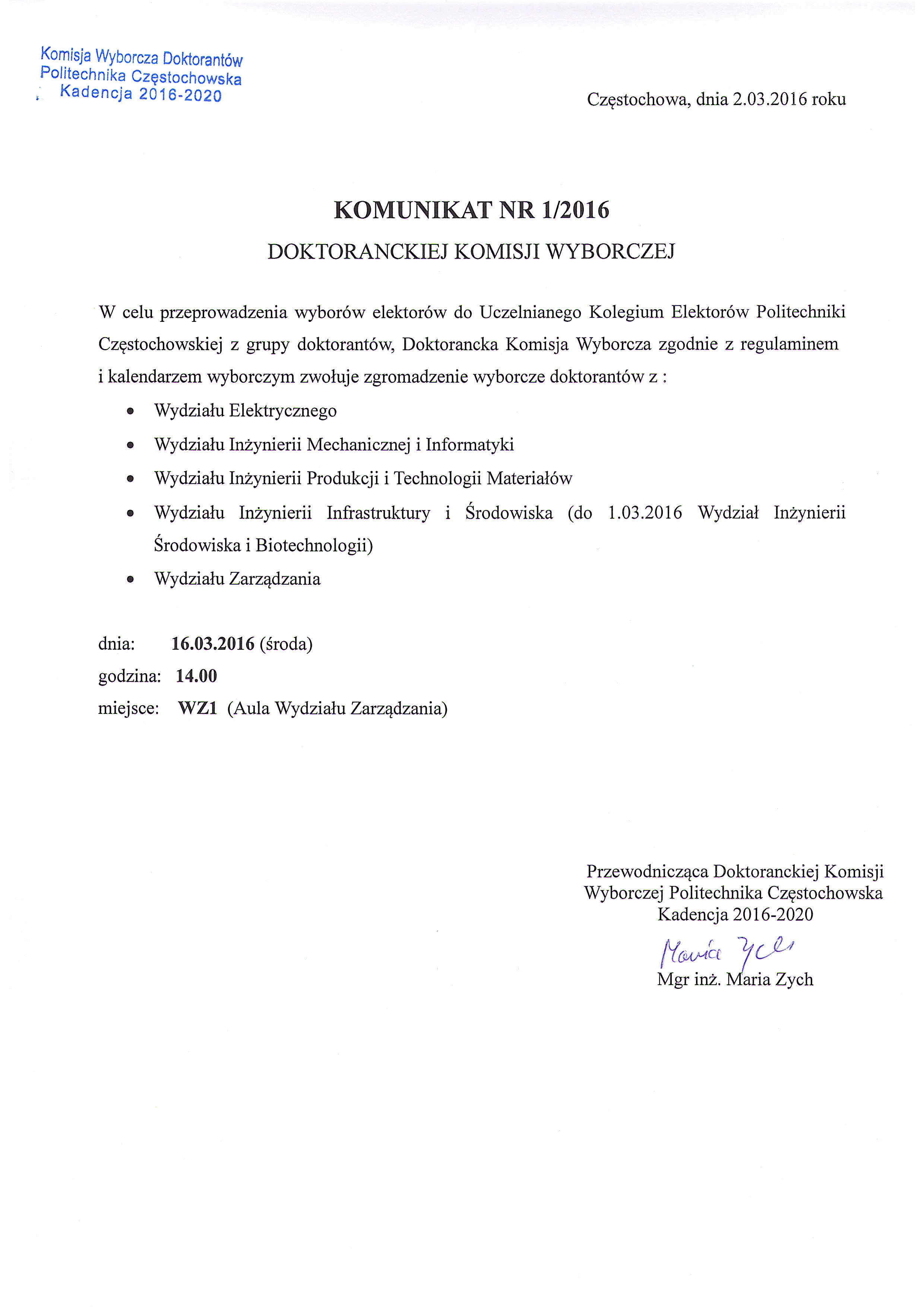 Komunikat nr 1/2016 784.05 KB jpg Pobierz