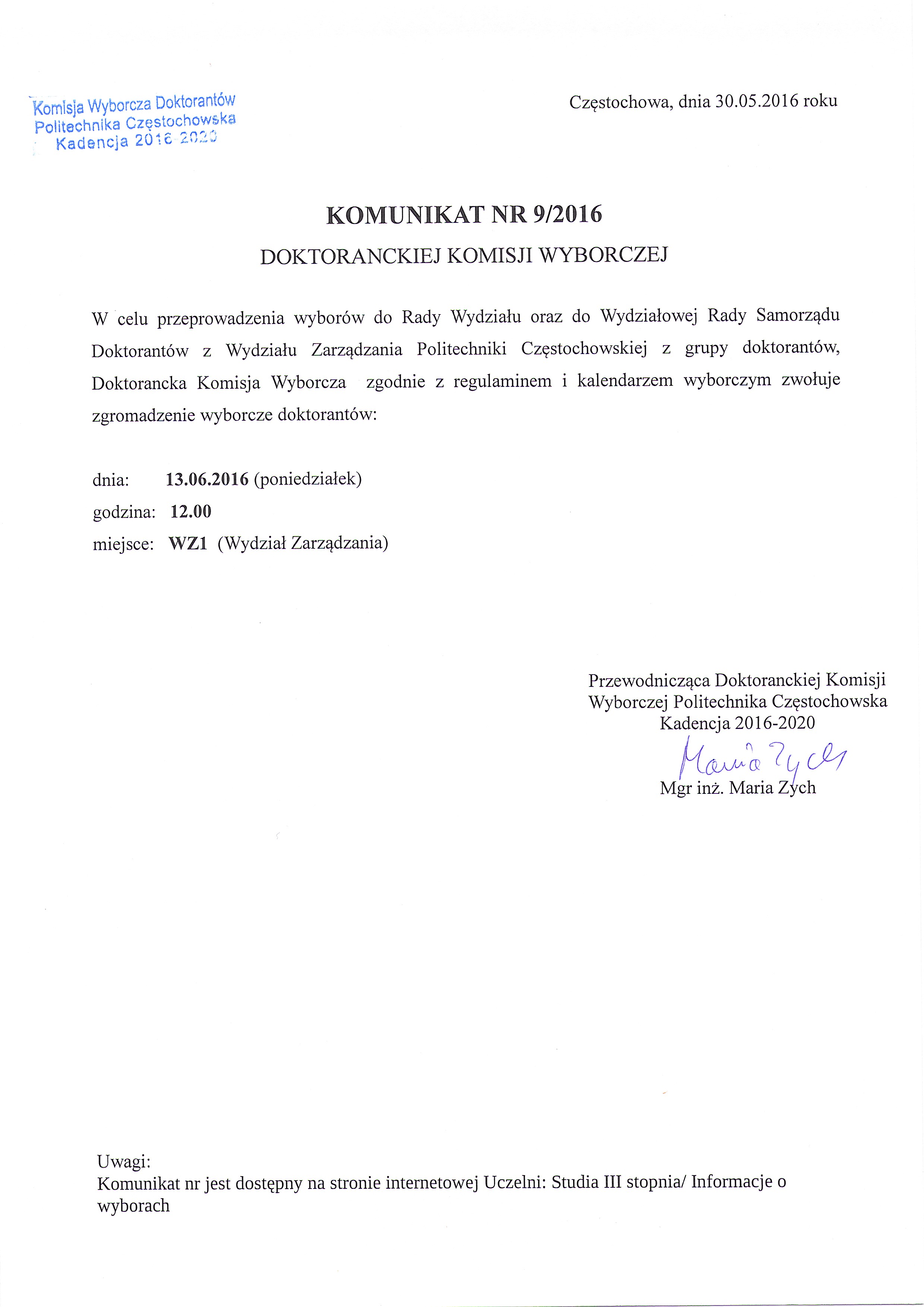 Komunikat nr 9/2016 545.32 KB jpg Pobierz