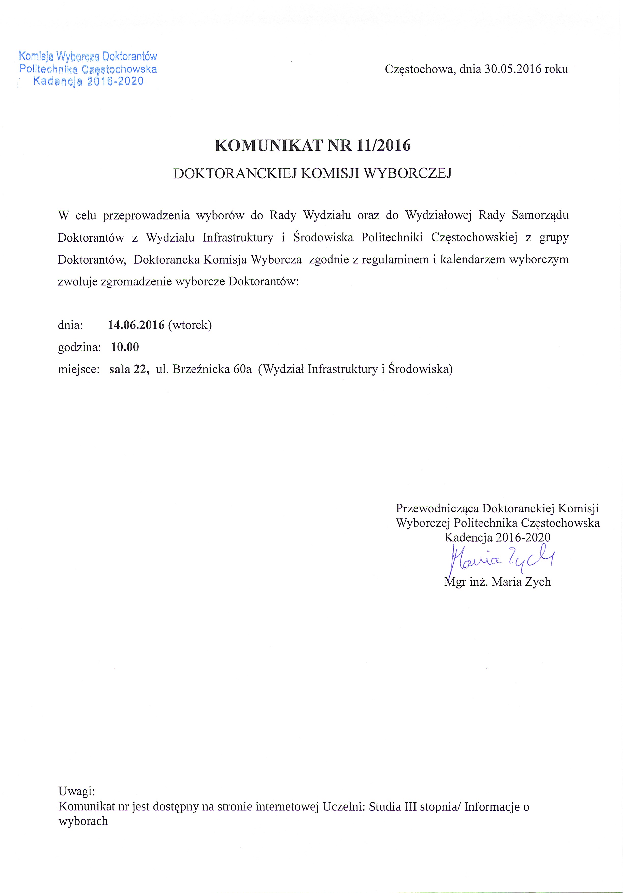 Komunikat nr 11/2016 570.63 KB jpg Pobierz