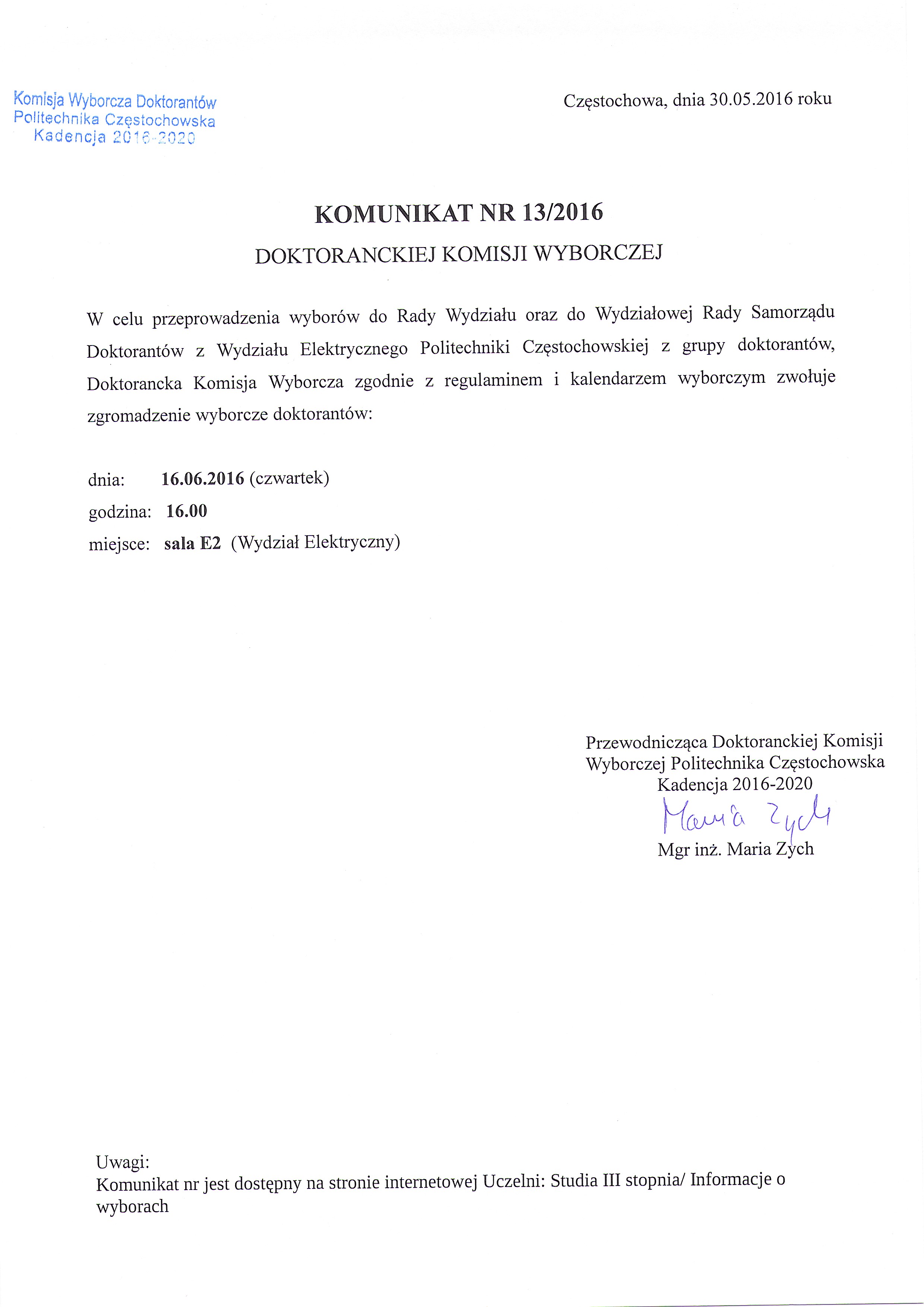 Komunikat nr 13/2016 544.22 KB jpg Pobierz