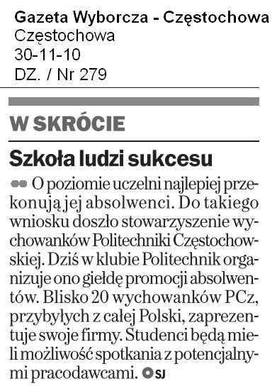 Gazeta Wyborcza Częstochowa 30.11.2010 |