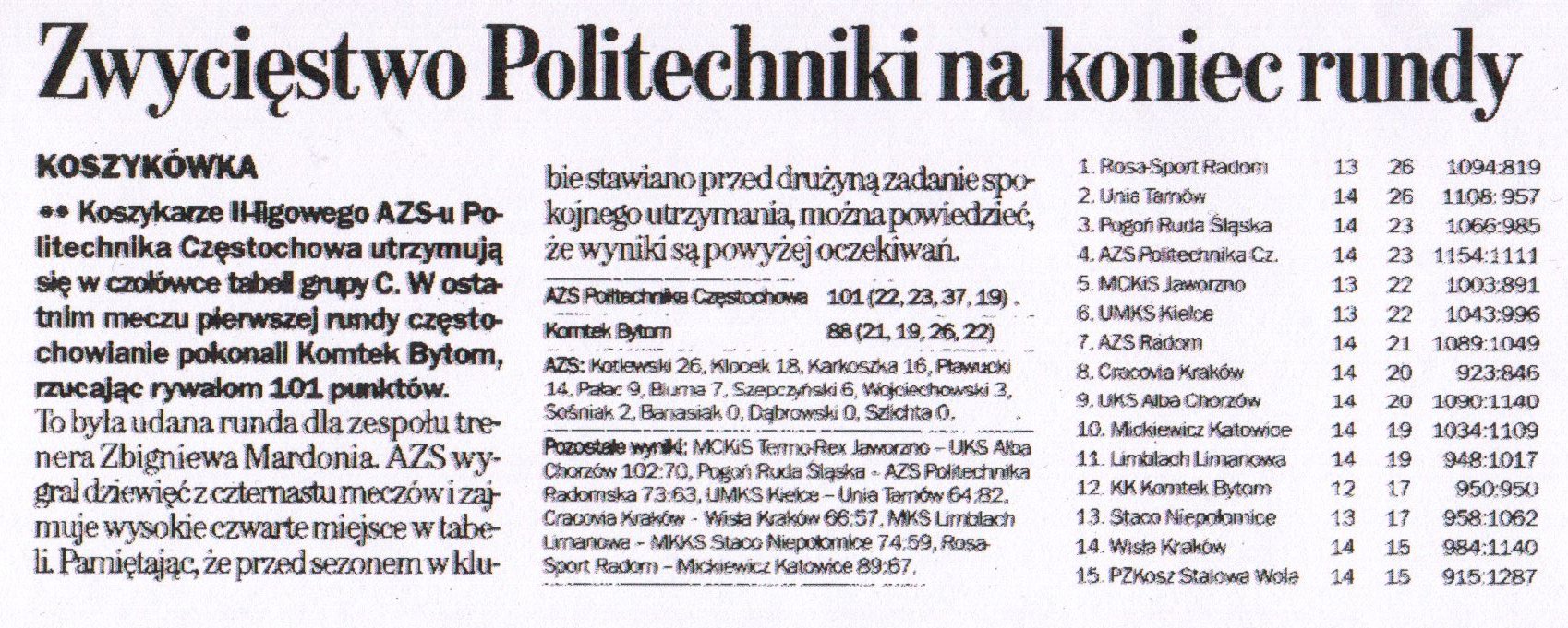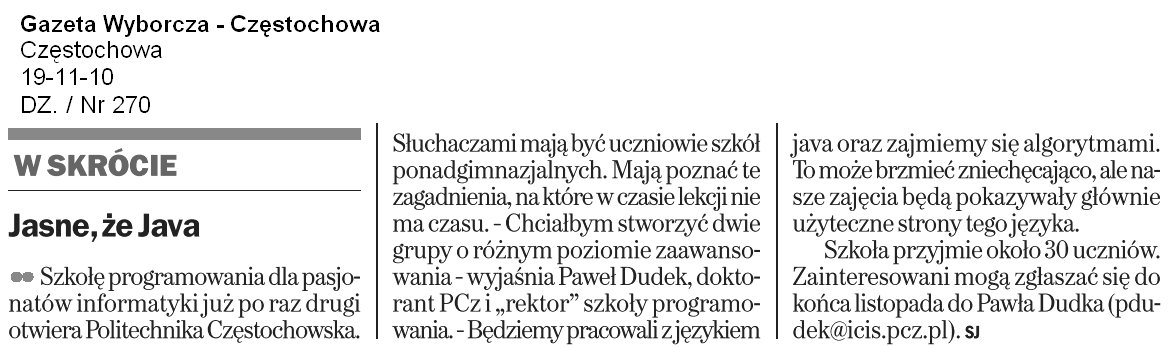 Gazeta Wyborcza Częstochowa 1.12.2010 |