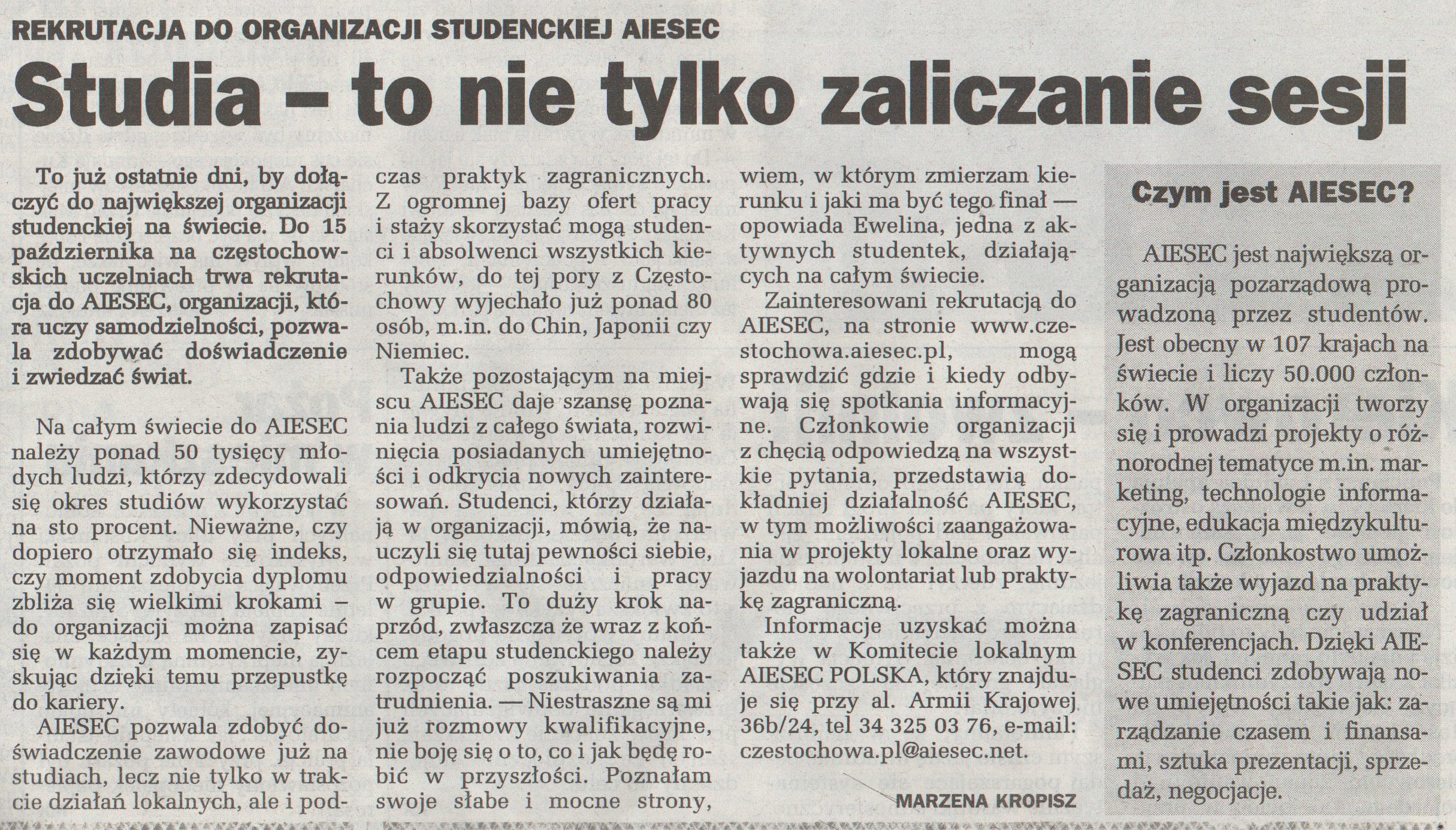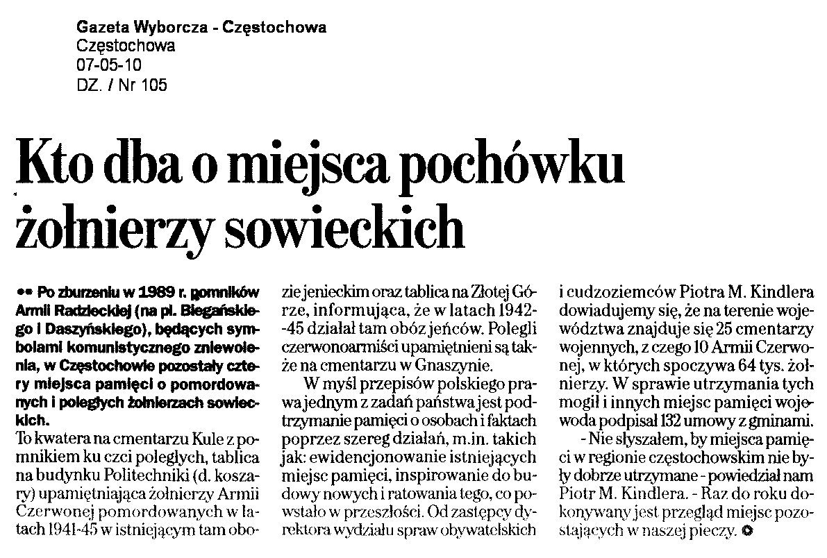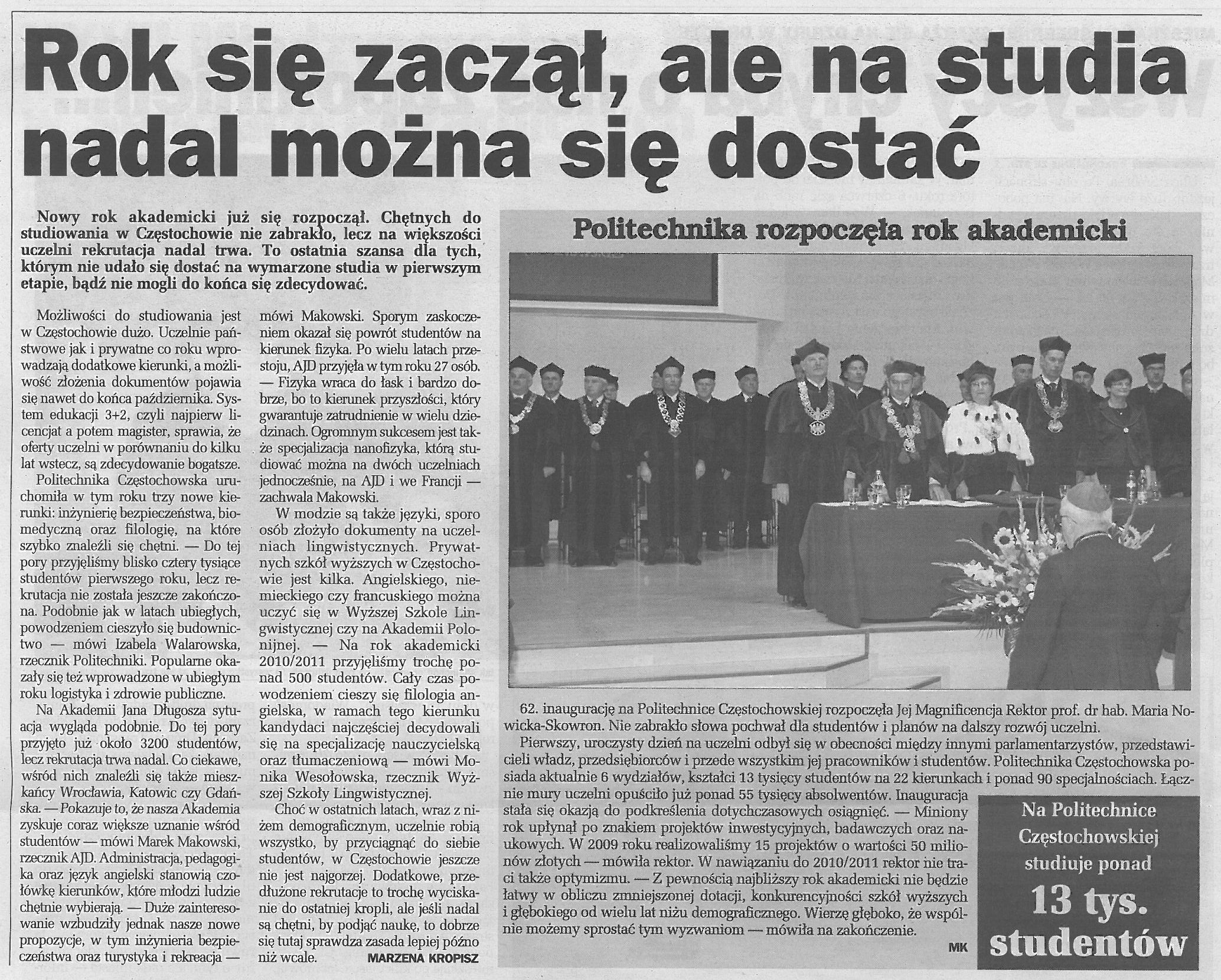 Gazeta Wyborcza Częstochowa 4.10.2010 |