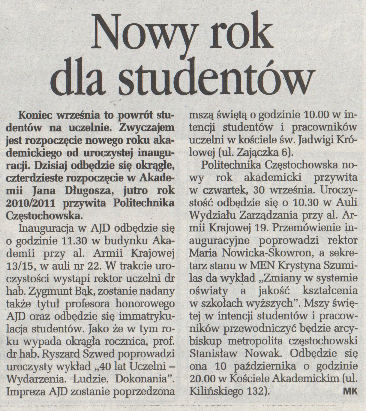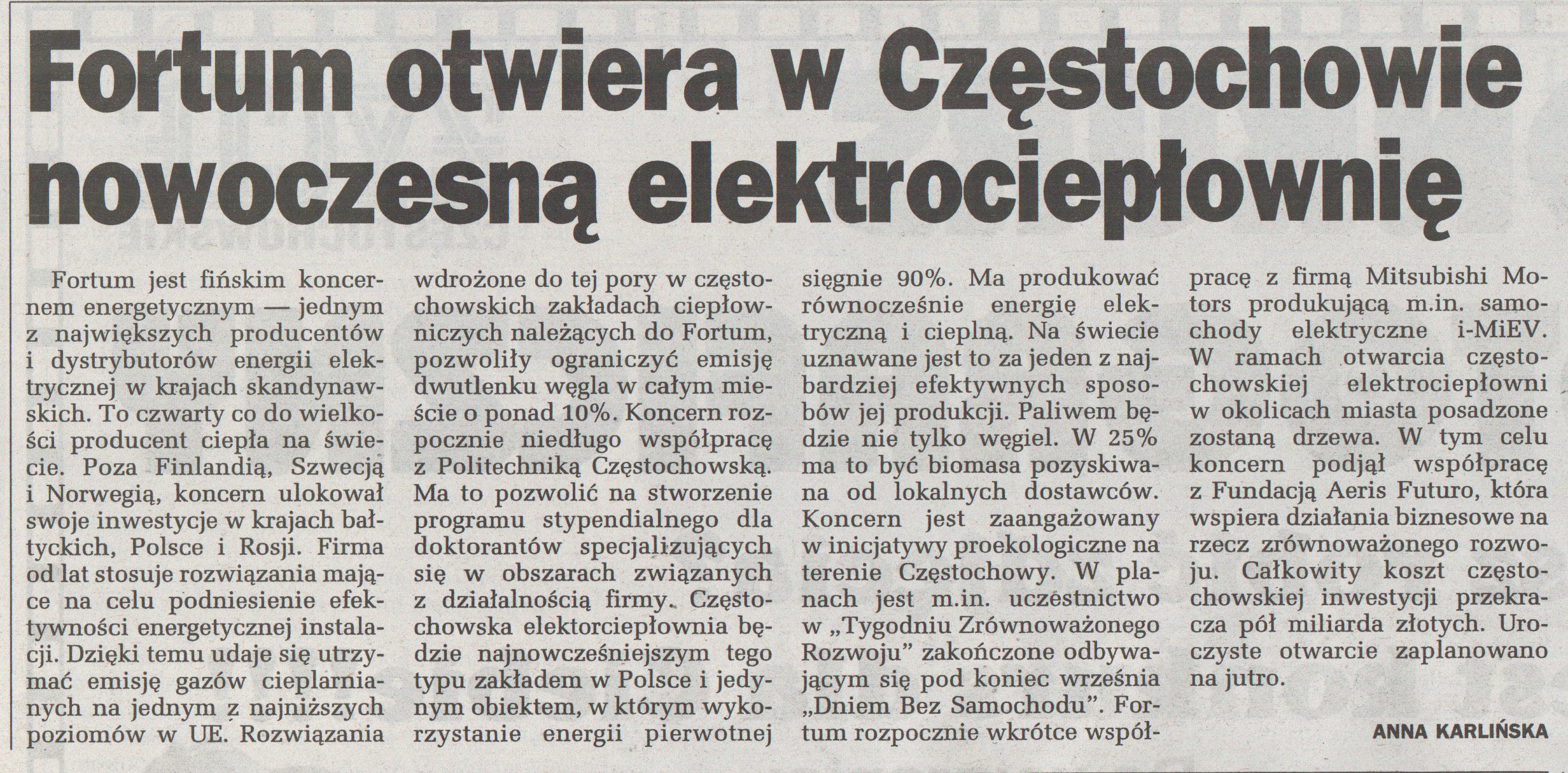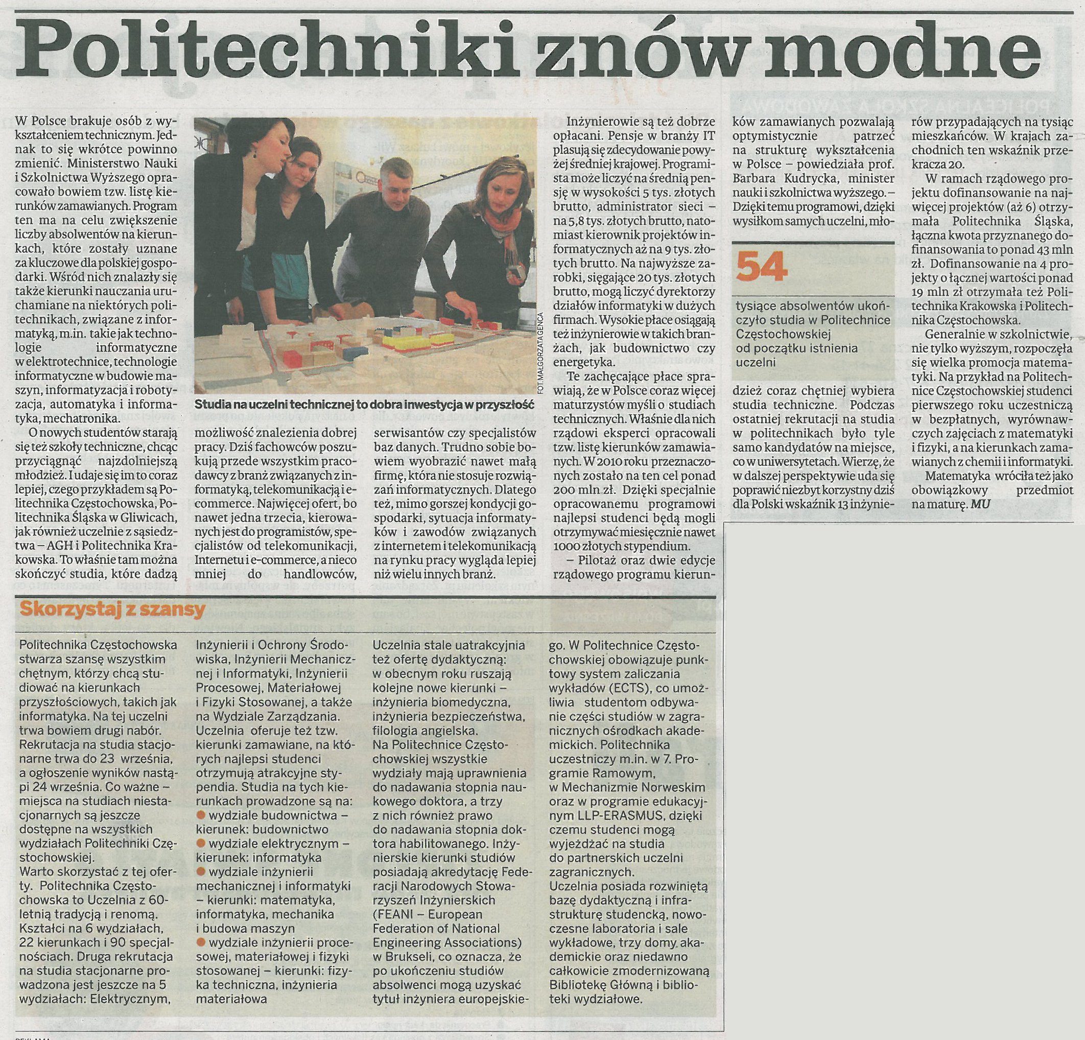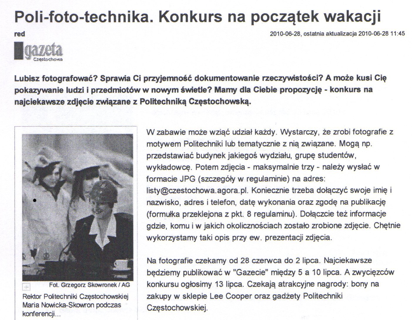 Gazeta Wyborcza Częstochowa 1.10.2010 |
