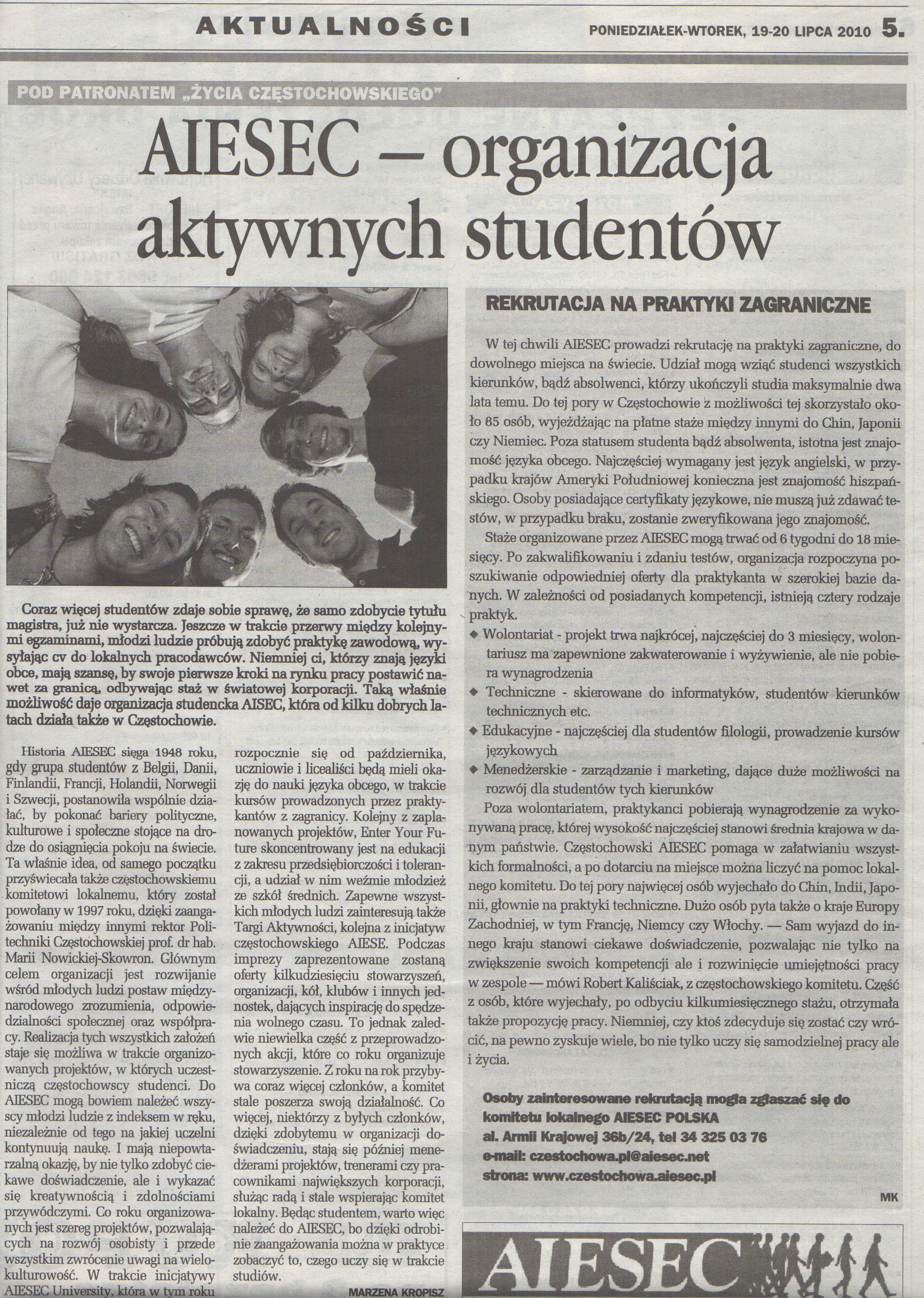 Gazeta Wyborcza Częstochowa 20-21.03.2010 |