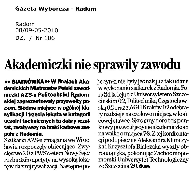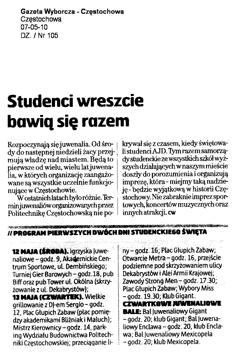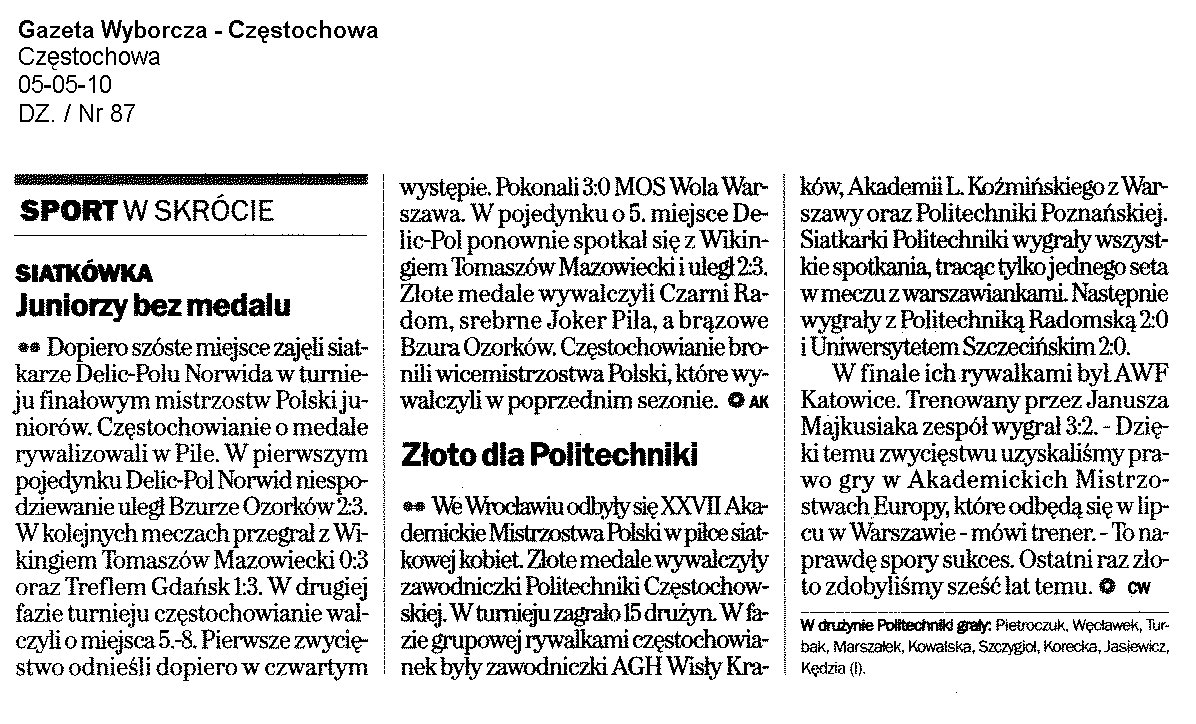 Gazeta Wyborcza Częstochowa 10.02.2010 |