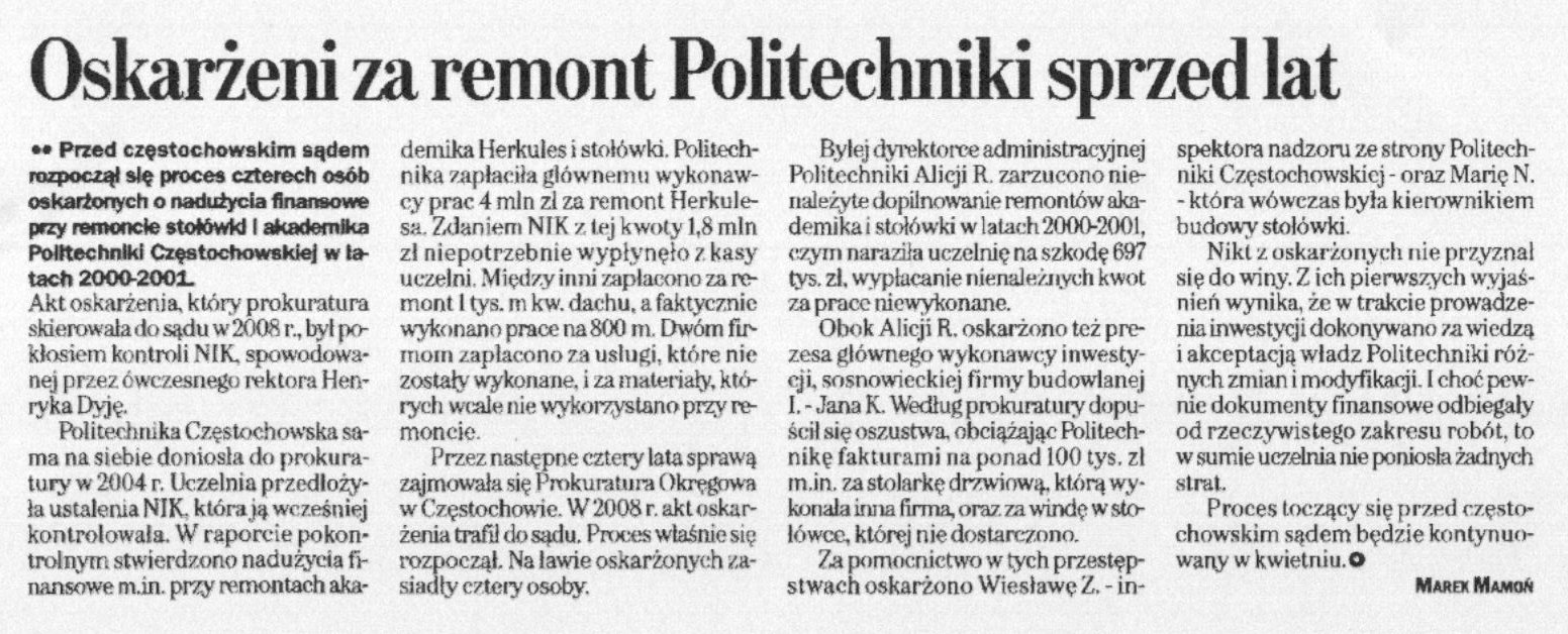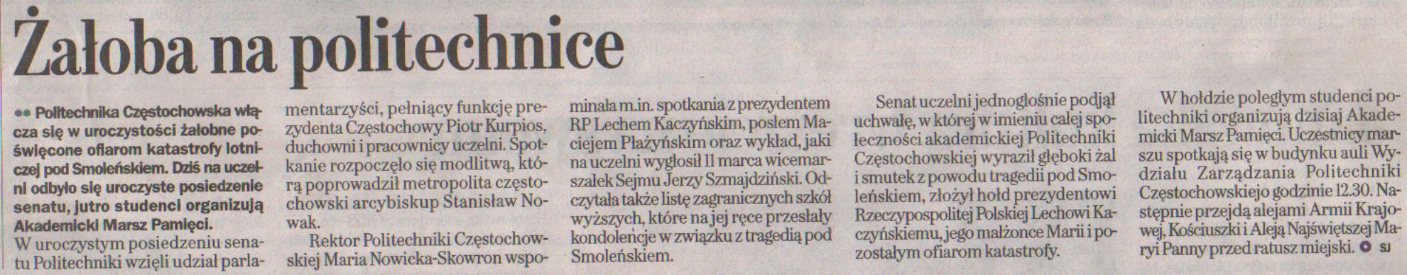 Gazeta Wyborcza Częstochowa 16.03.2010 |