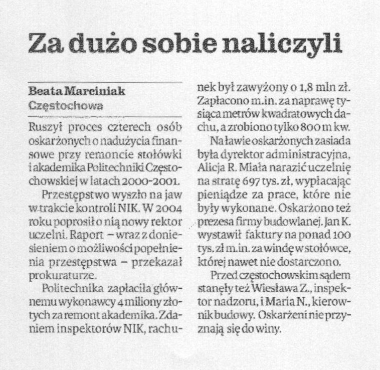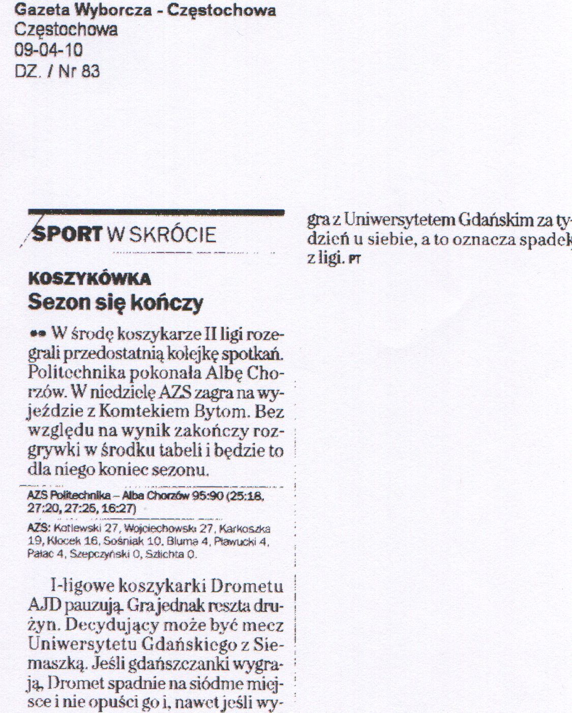 Gazeta Wyborcza Częstochowa 8.02.2010 |