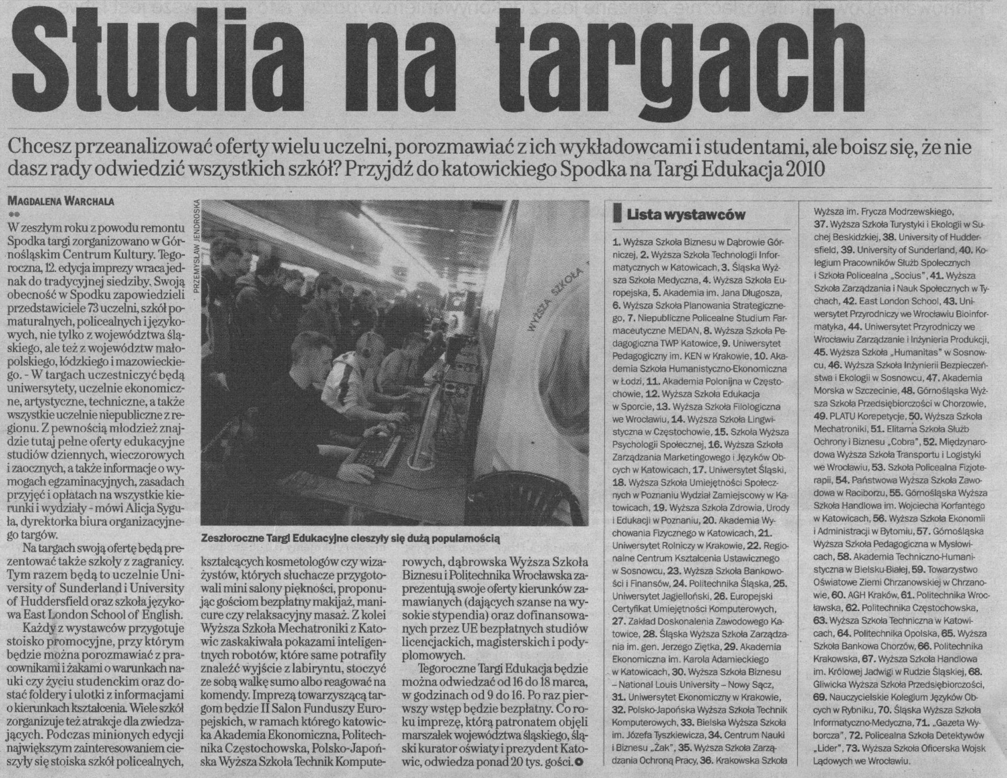 Gazeta Wyborcza Gazeta Na Targi Edukacyjne 15.03.2010 |