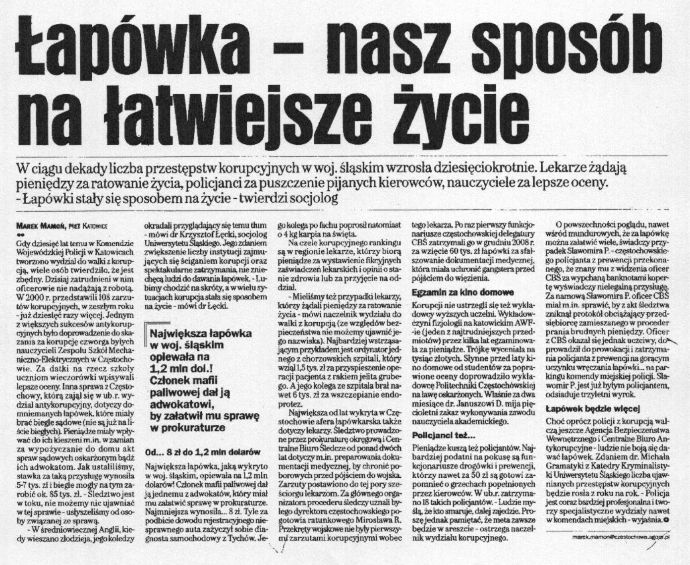 Gazeta Wyborcza Częstochowa 23.01.2010 |