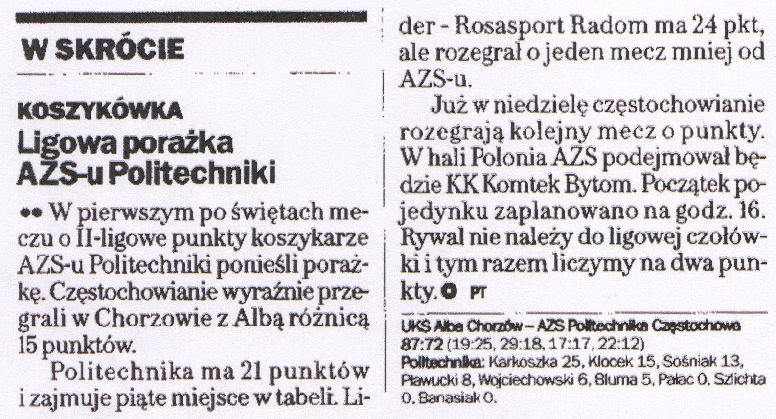 Gazeta Wyborcza Częstochowa 01.02.2010 |