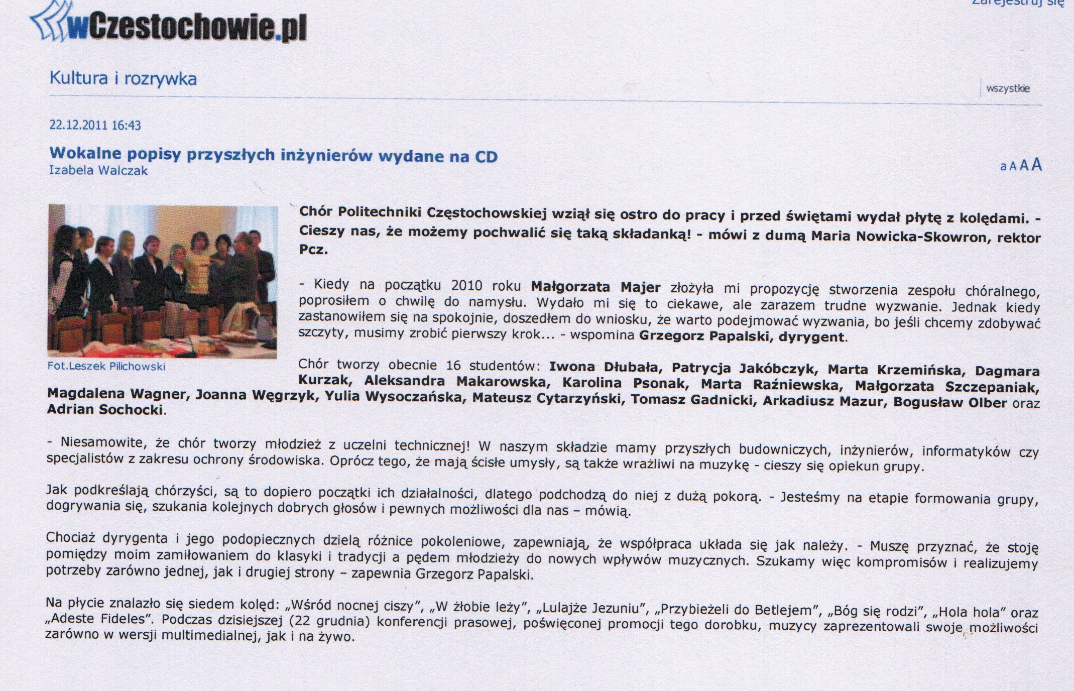 Gazeta Wyborcza Czestochowa 17-18.12.2011 |