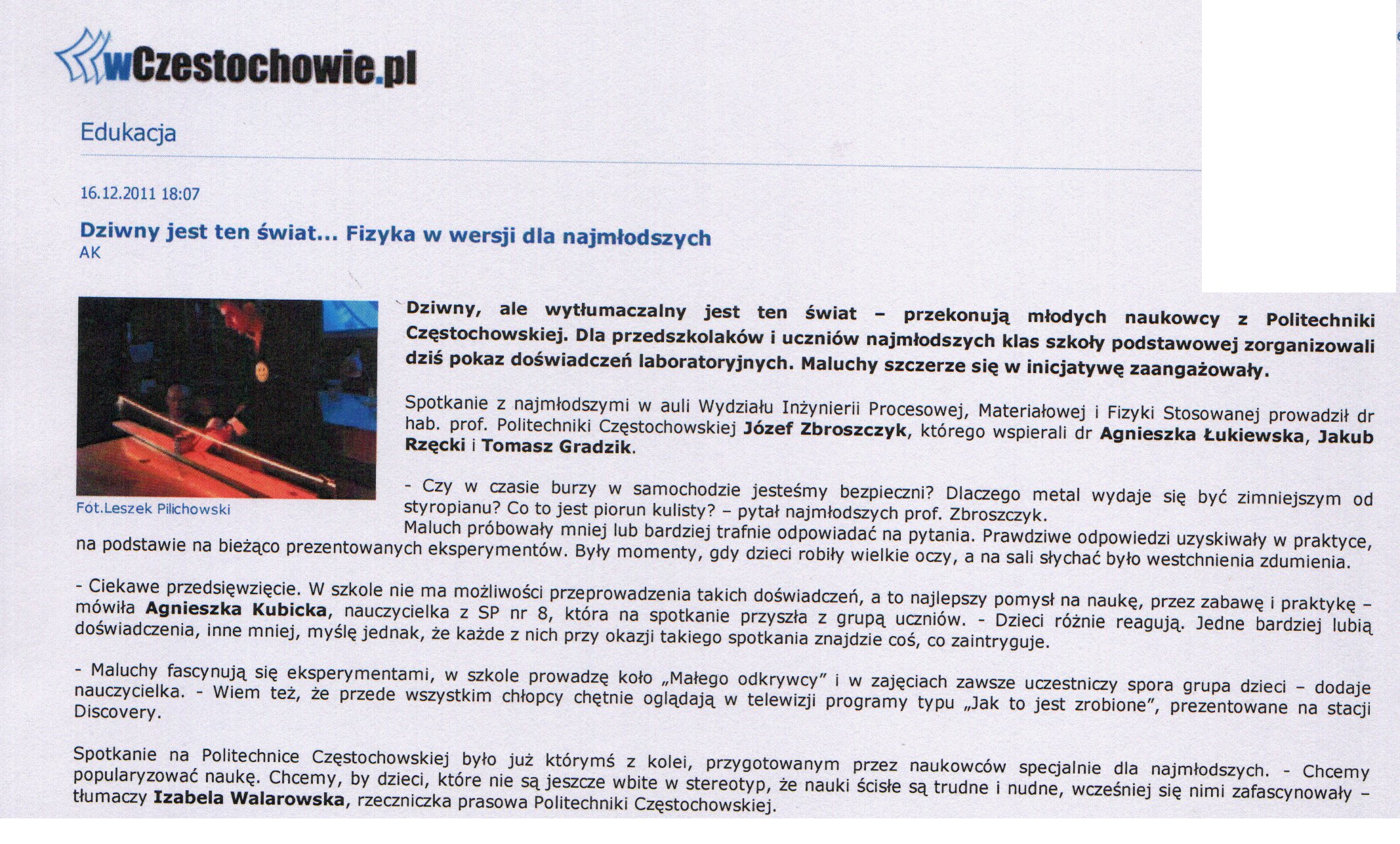 Gazeta Wyborcza Częstochowa 09.12.2011 |