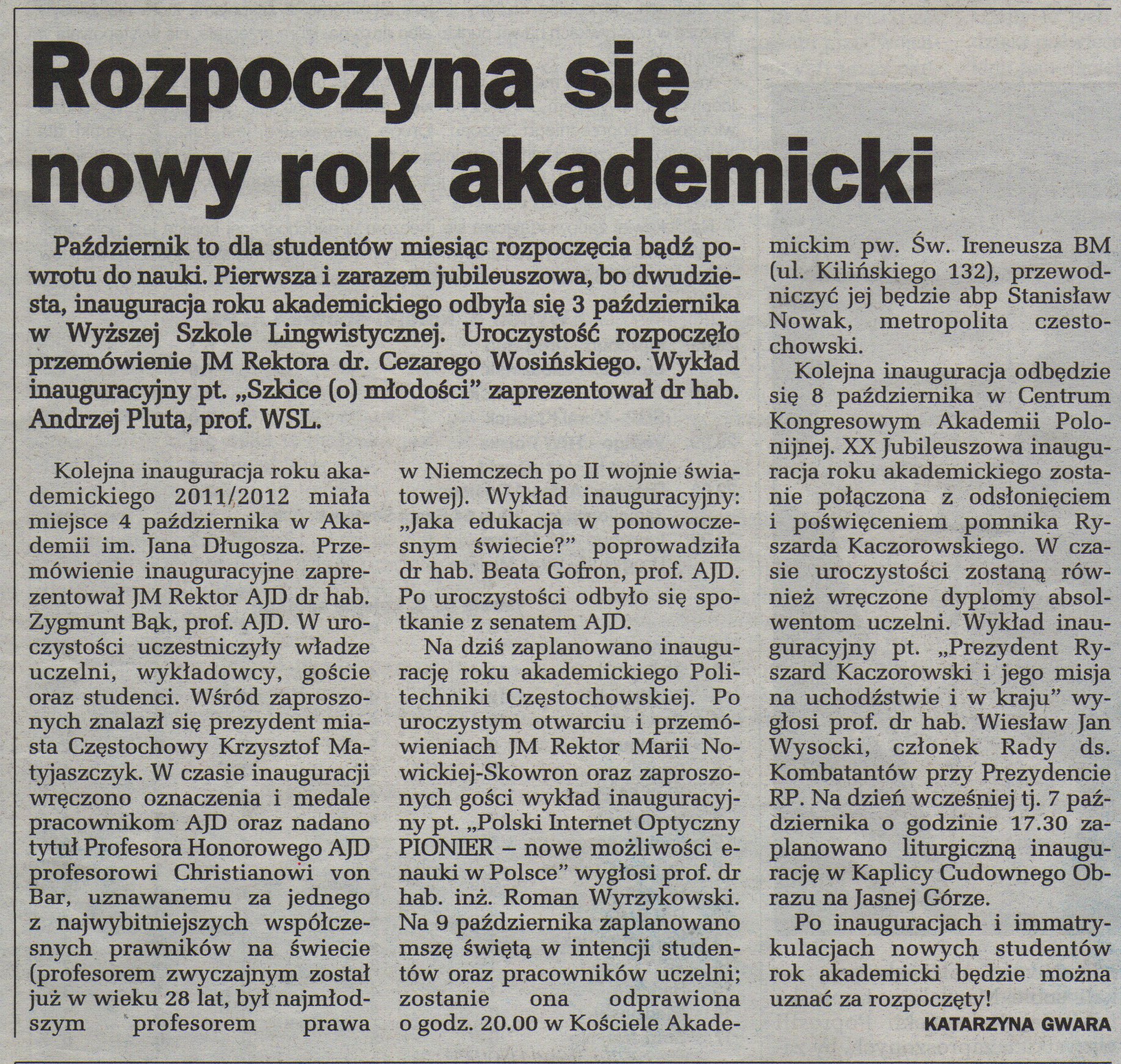 Gazeta Wyborcza Częstochowa 05.10.11 |