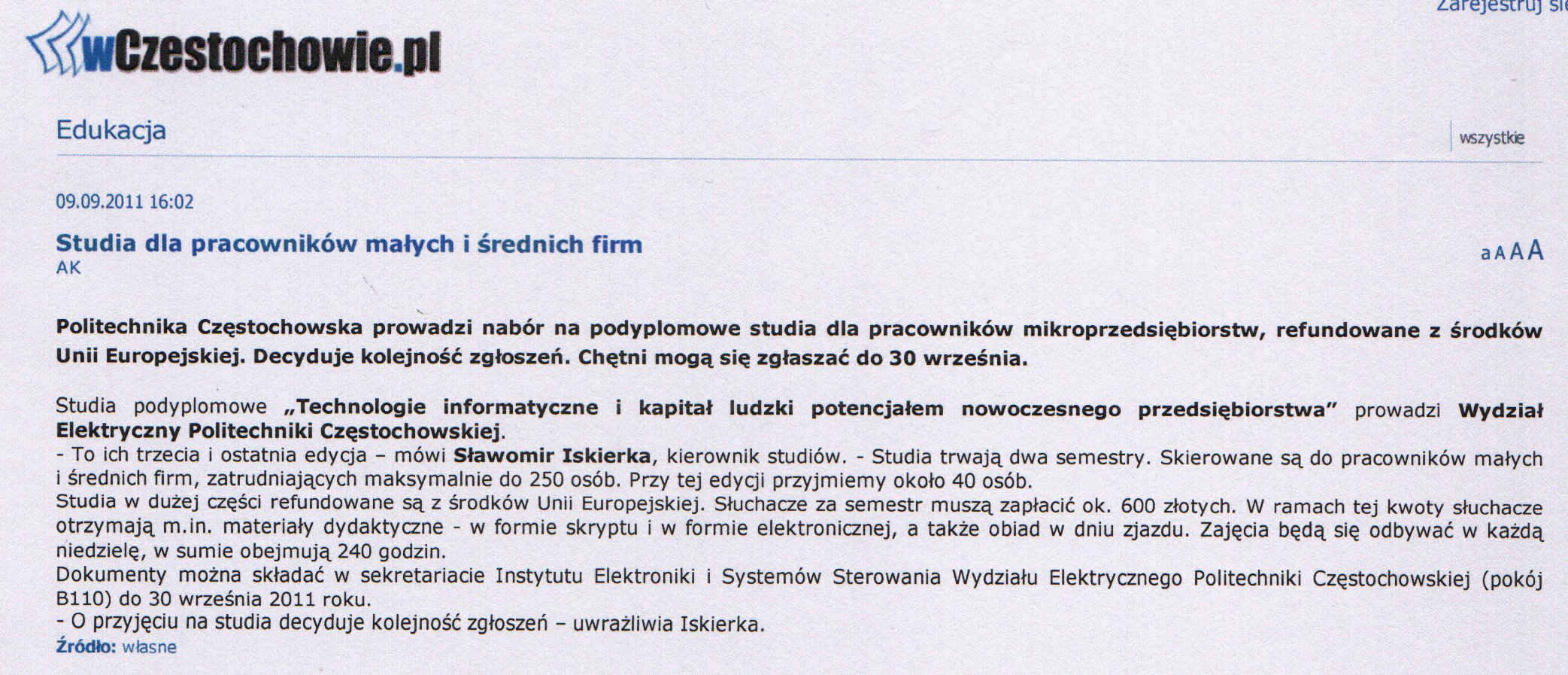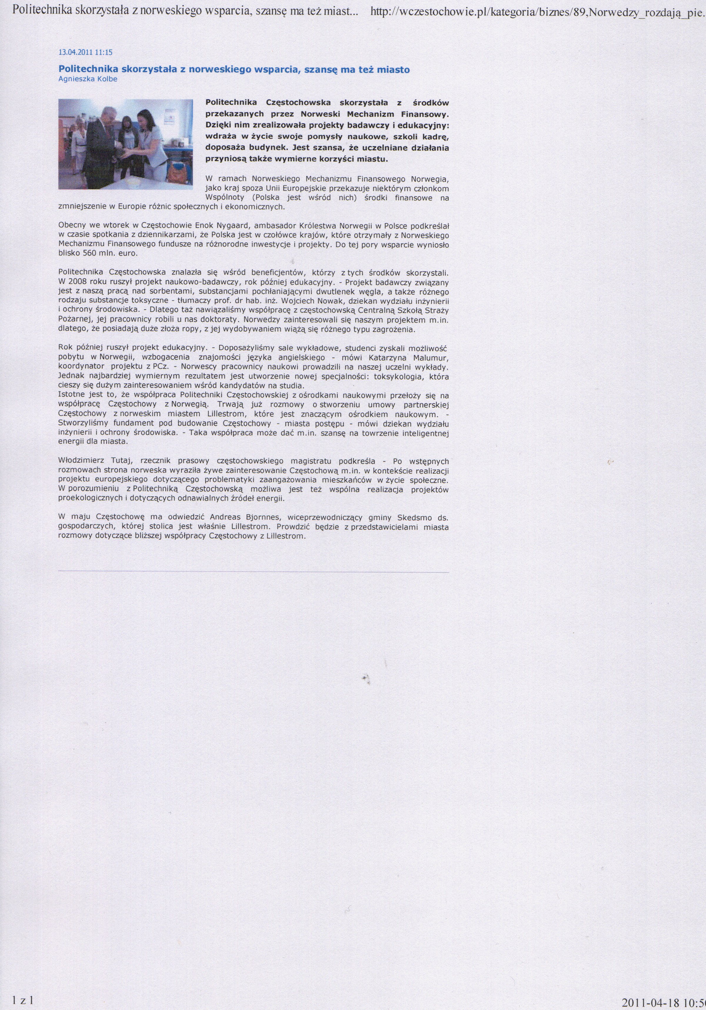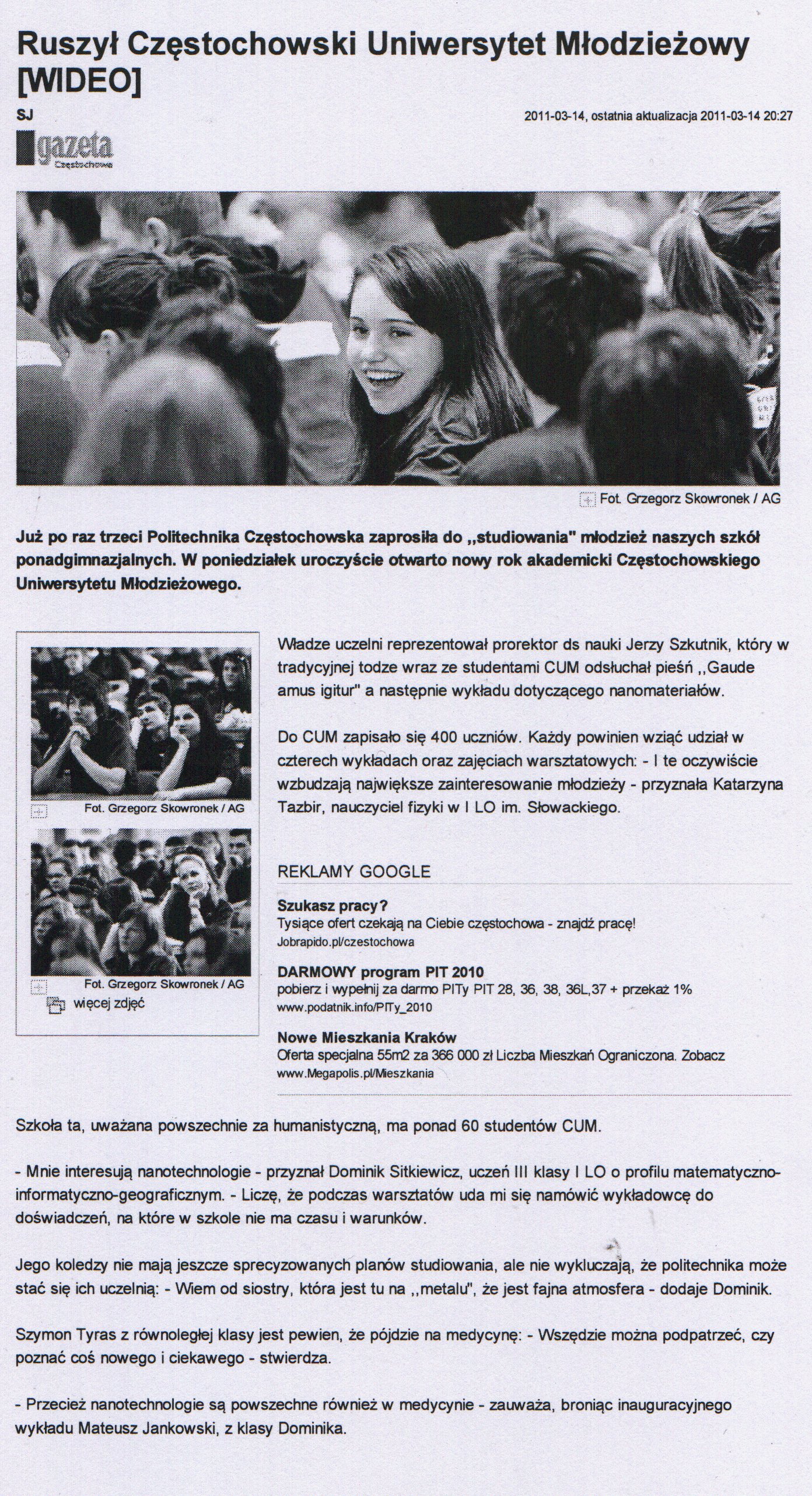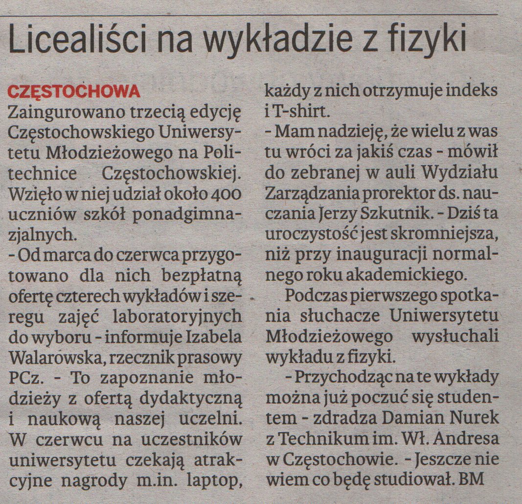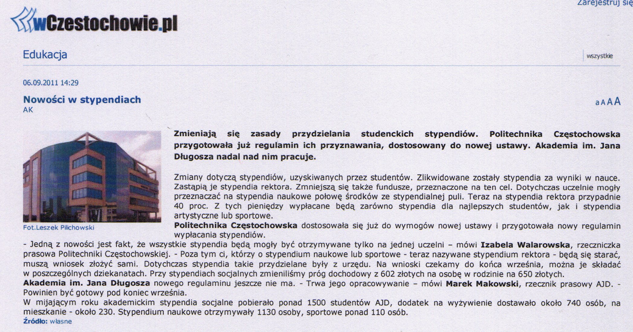 Gazeta Wyborcza Częstochowa (wydanie internetowe) 15.03.2011 |