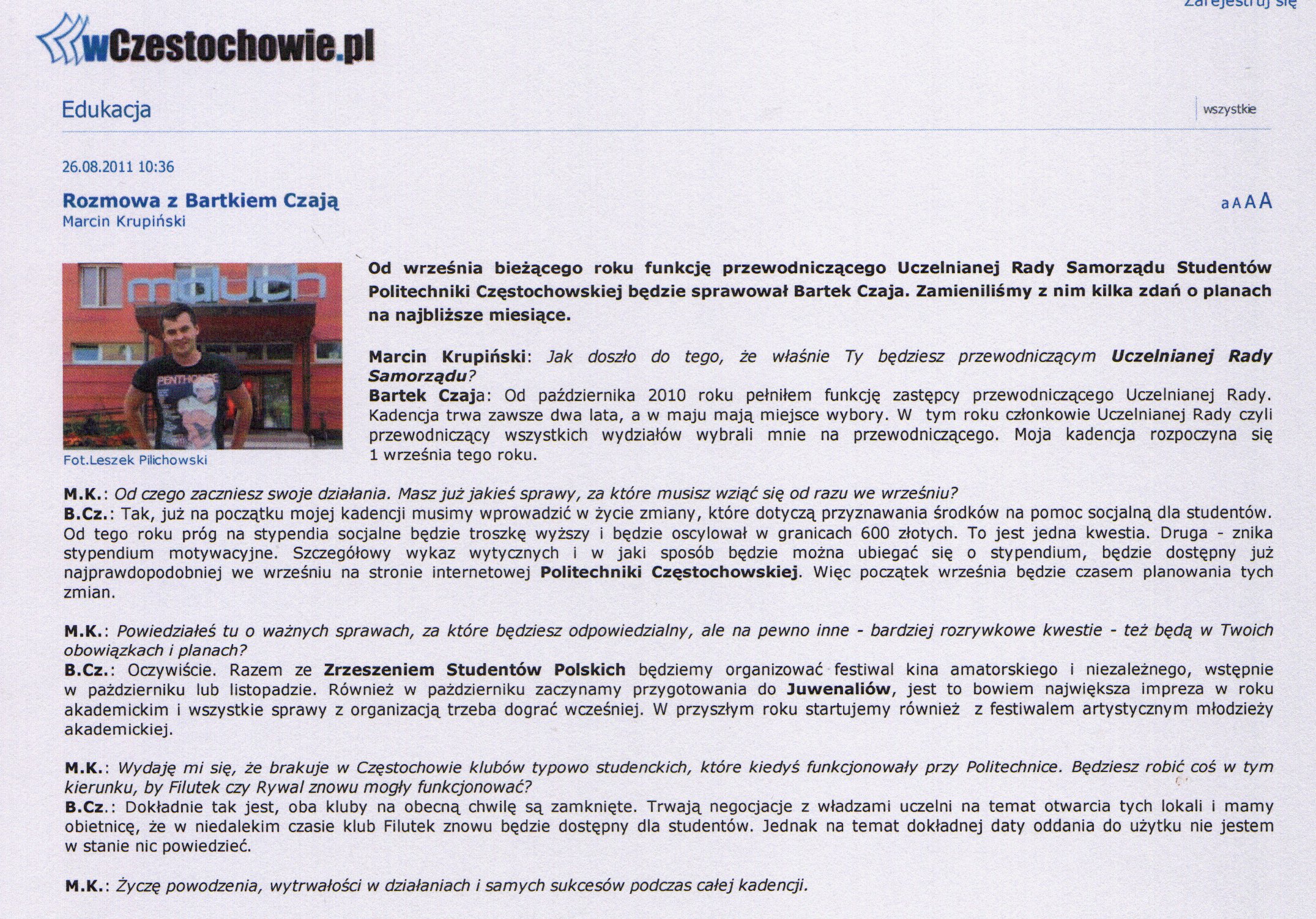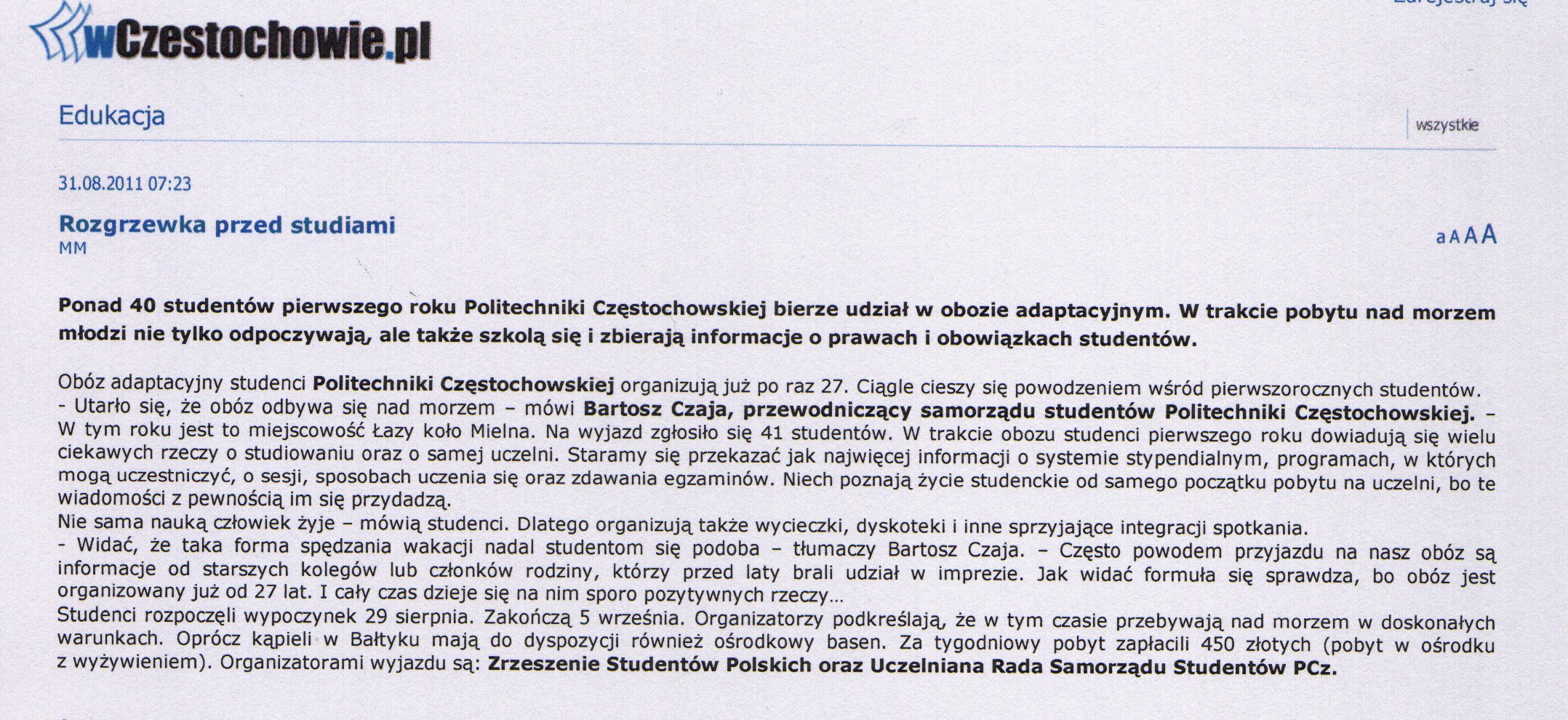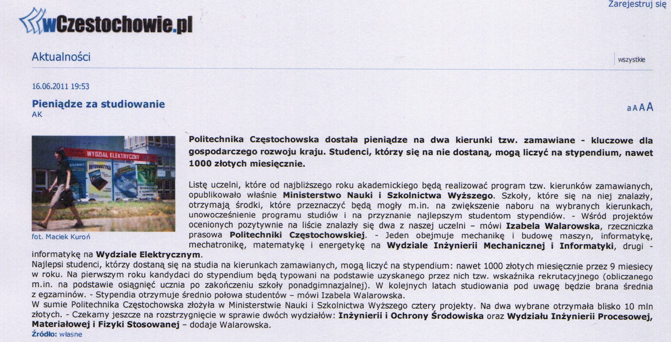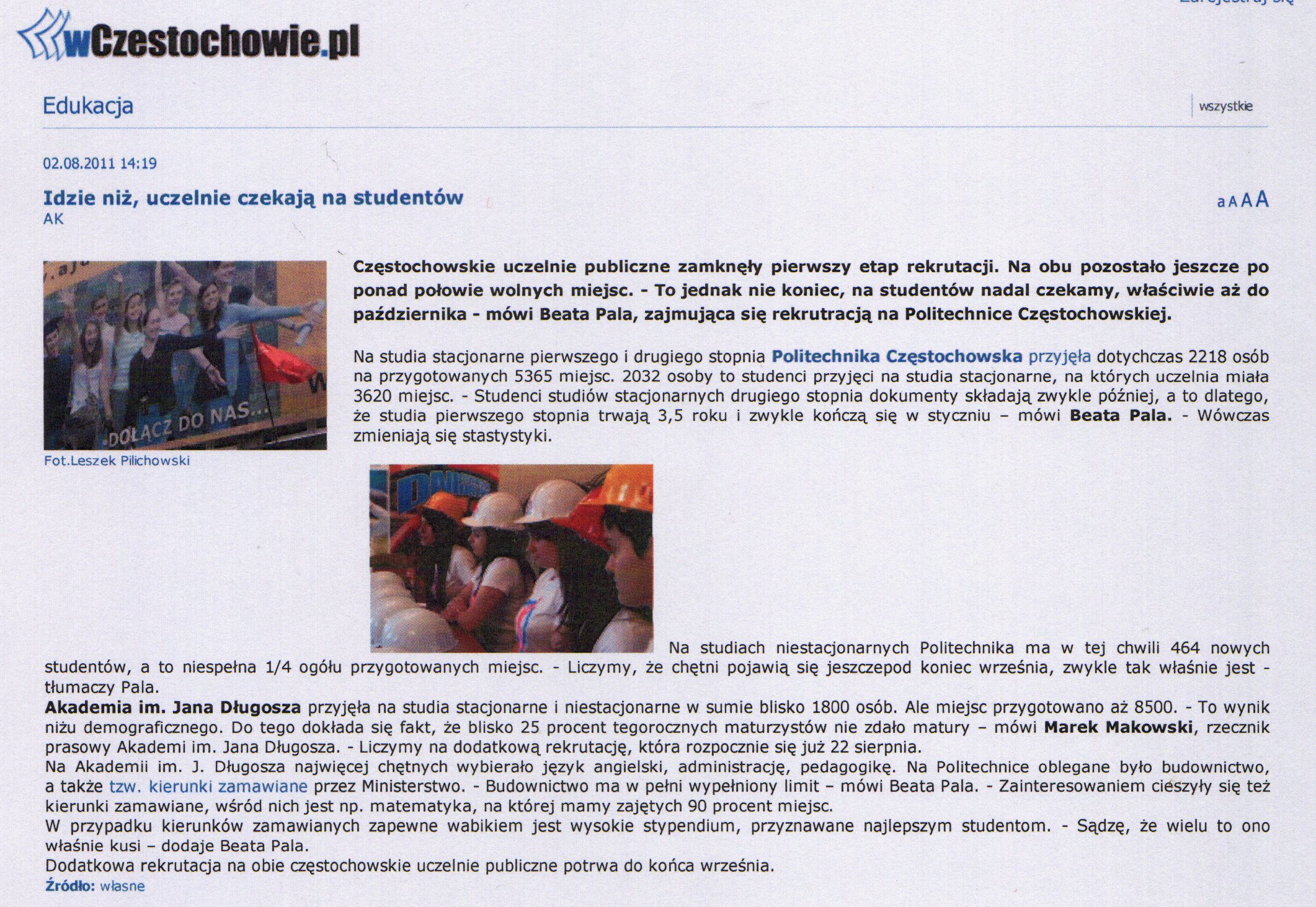 Gazeta Wyborcza Częstochowa (wydanie internetowe) 15.03.2011 |