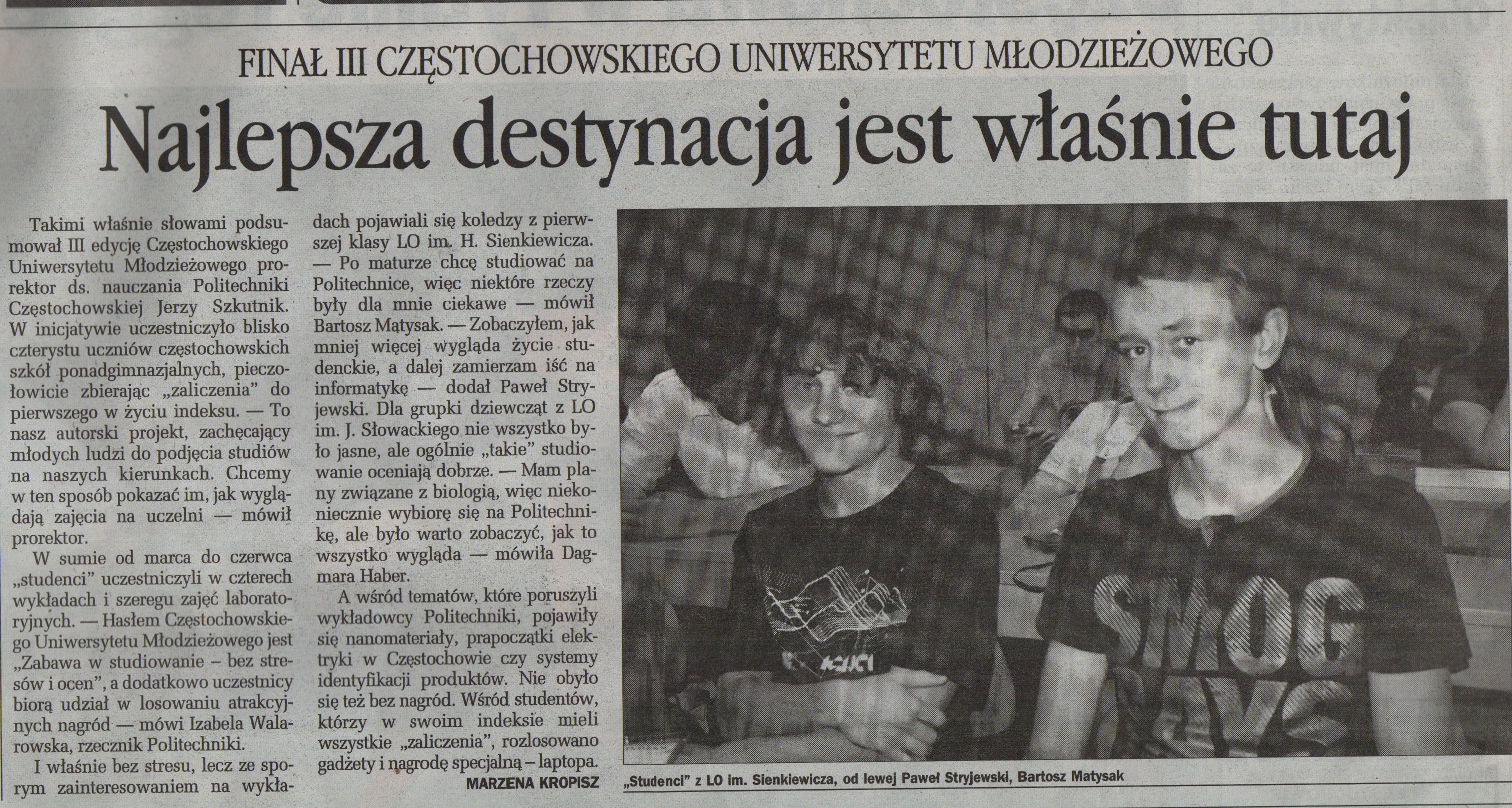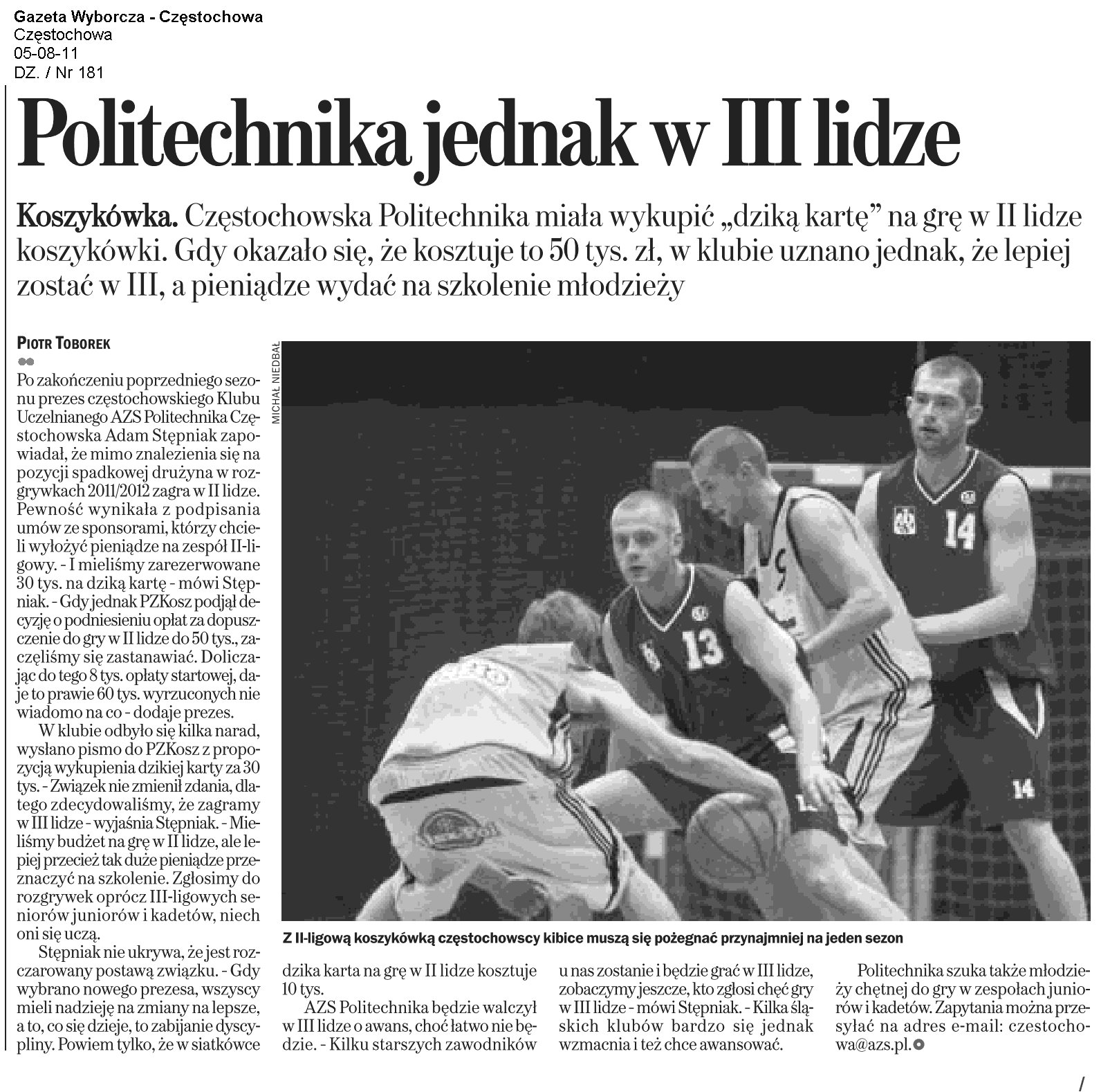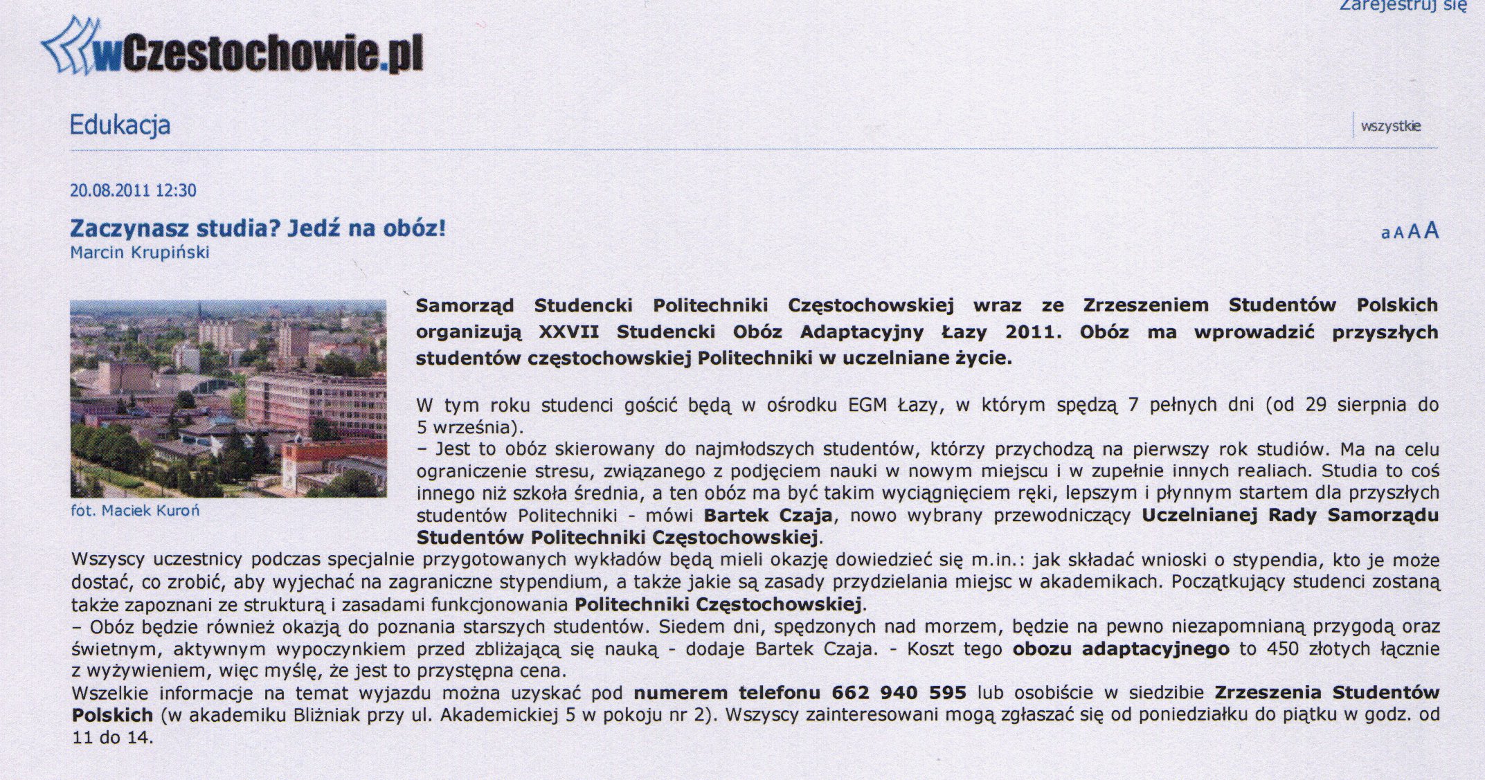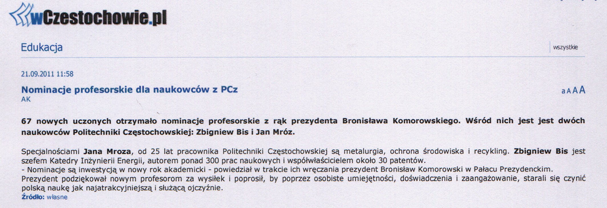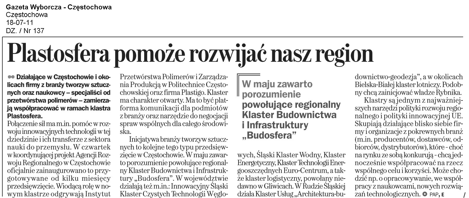 Gazeta Wyborcza Częstochowa (wydanie internetowe) 15.03.2011 |