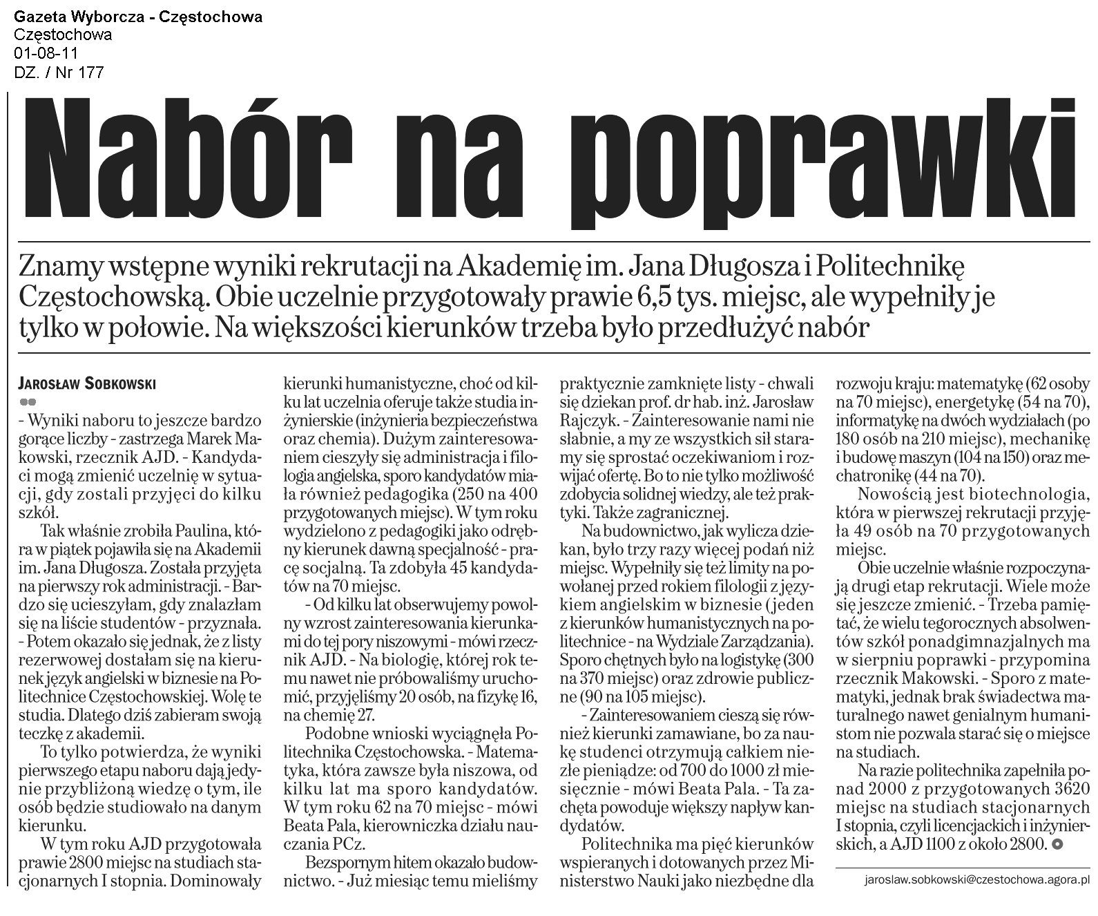 Gazeta Wyborcza Częstochowa 12.01.2011 |