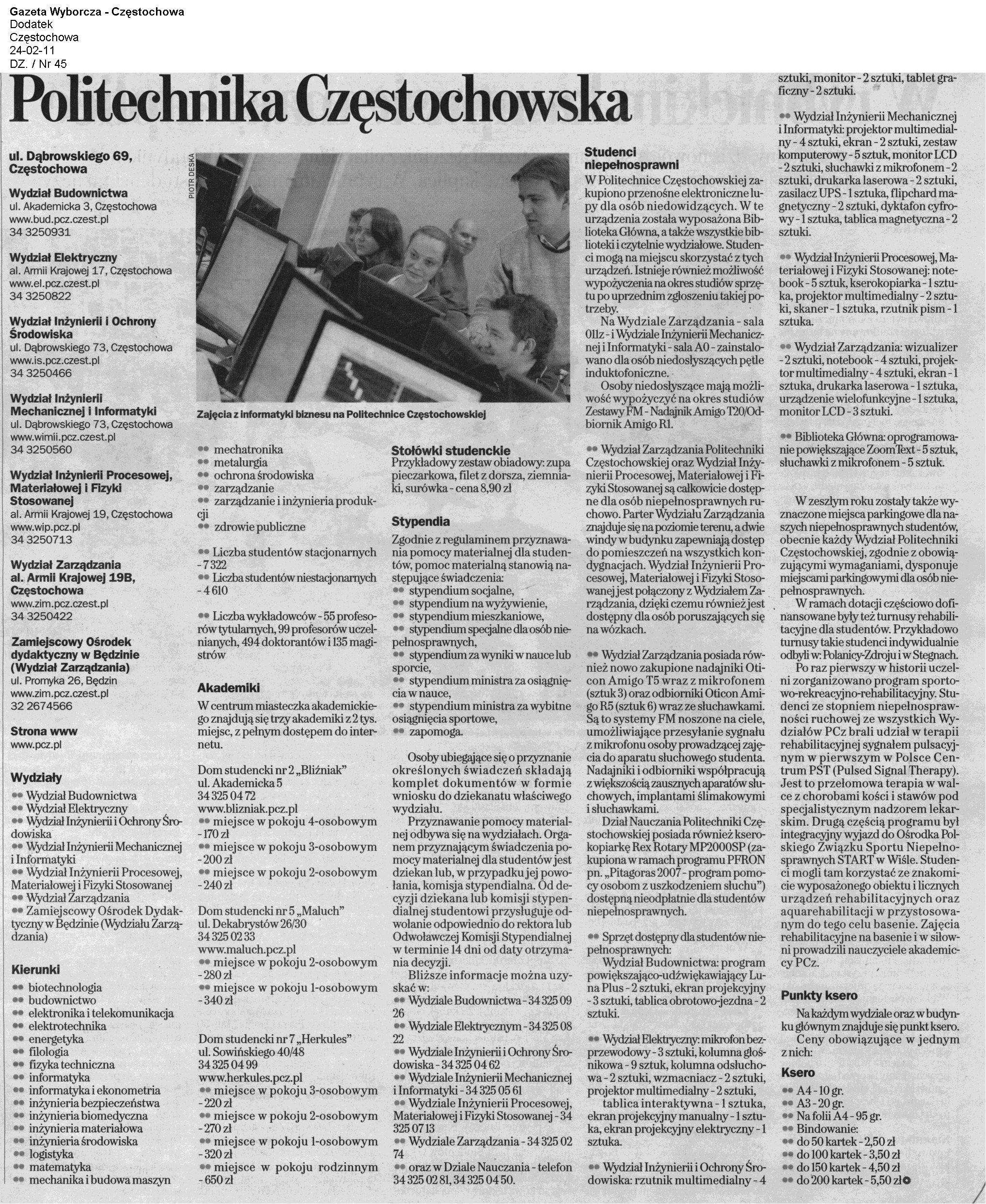Gazeta Wyborcza Częstochowa 24.02.2011 |