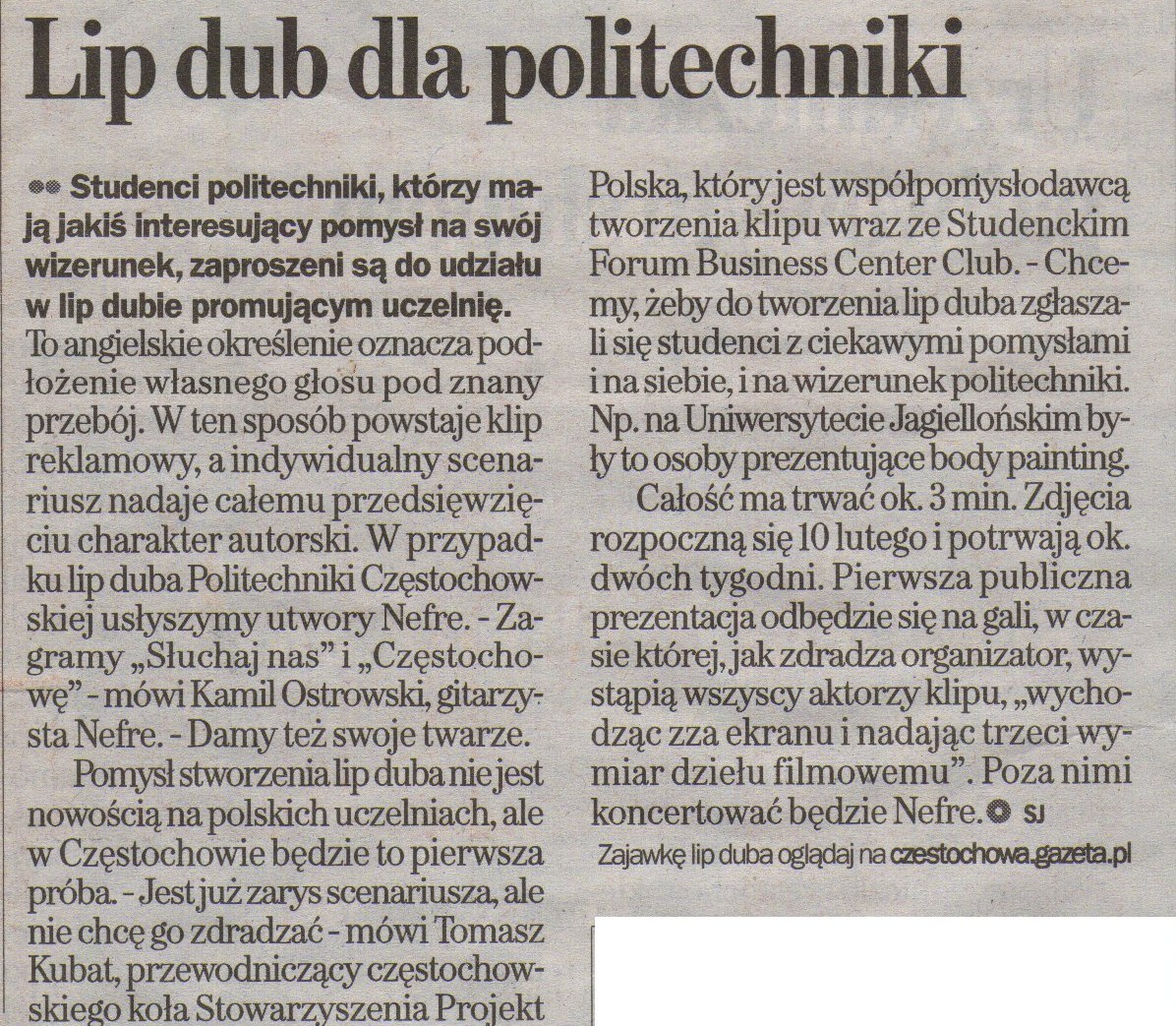 Gazeta Wyborcza Częstochowa 12-13.02.2011 |