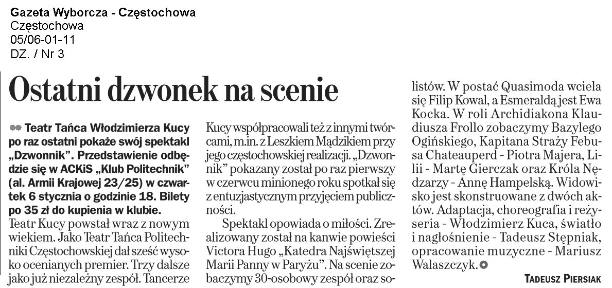 Gazeta Wyborcza Częstochowa 10.01.2011 |