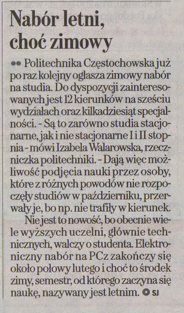 Dziennik Zachodni Częstochowa 08.12.2011 |