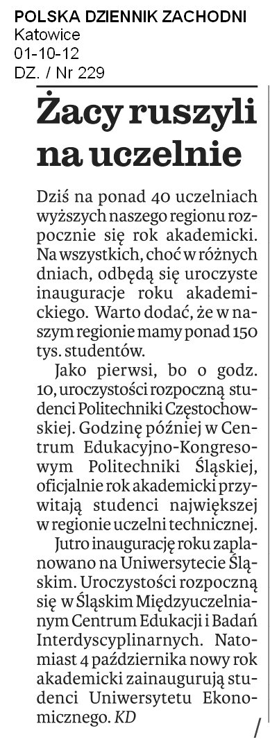 Polska Dziennik Zachodni 1.10.2012 |