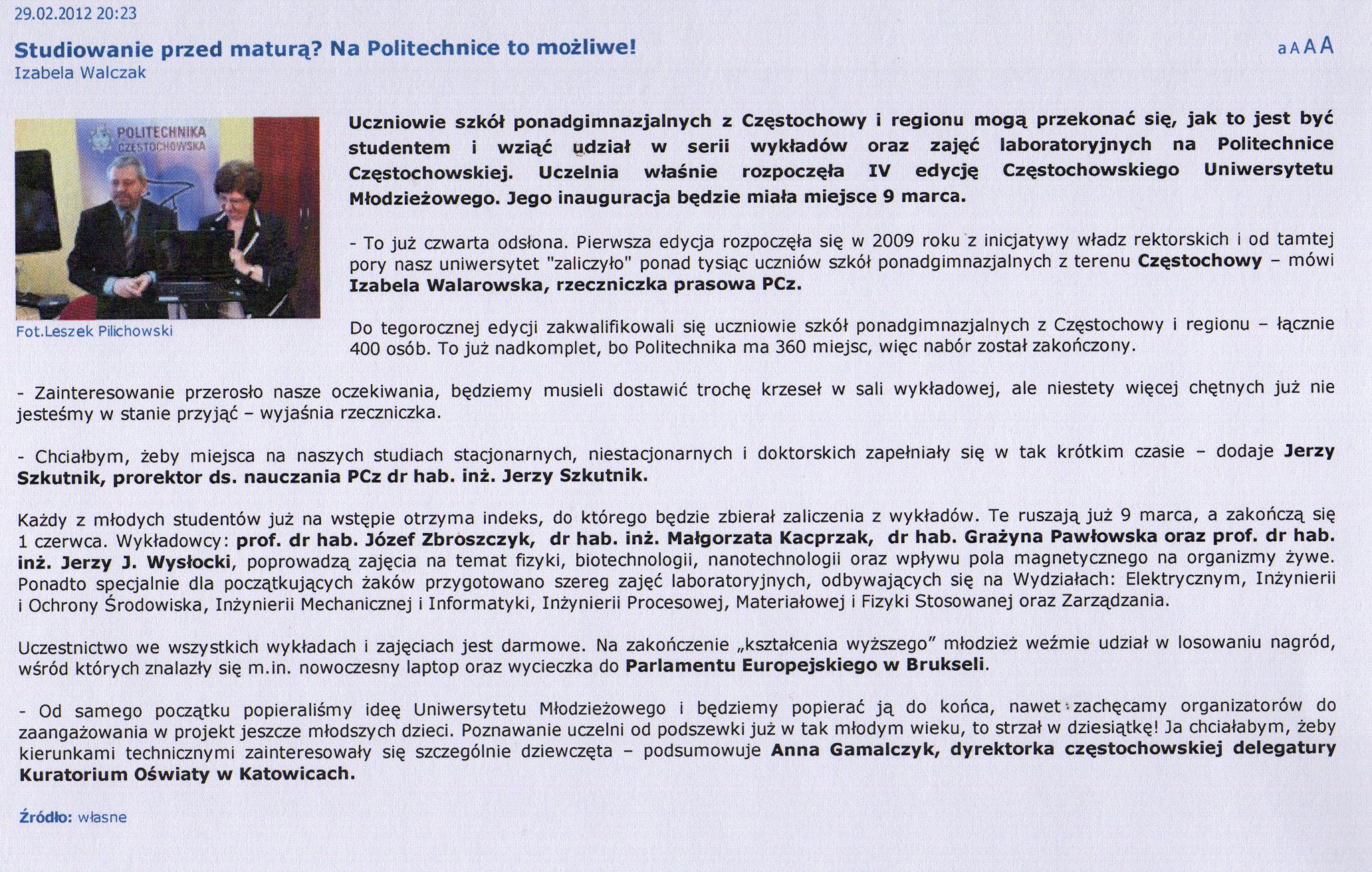 www.wczestochowie.pl 29.02.2012 |