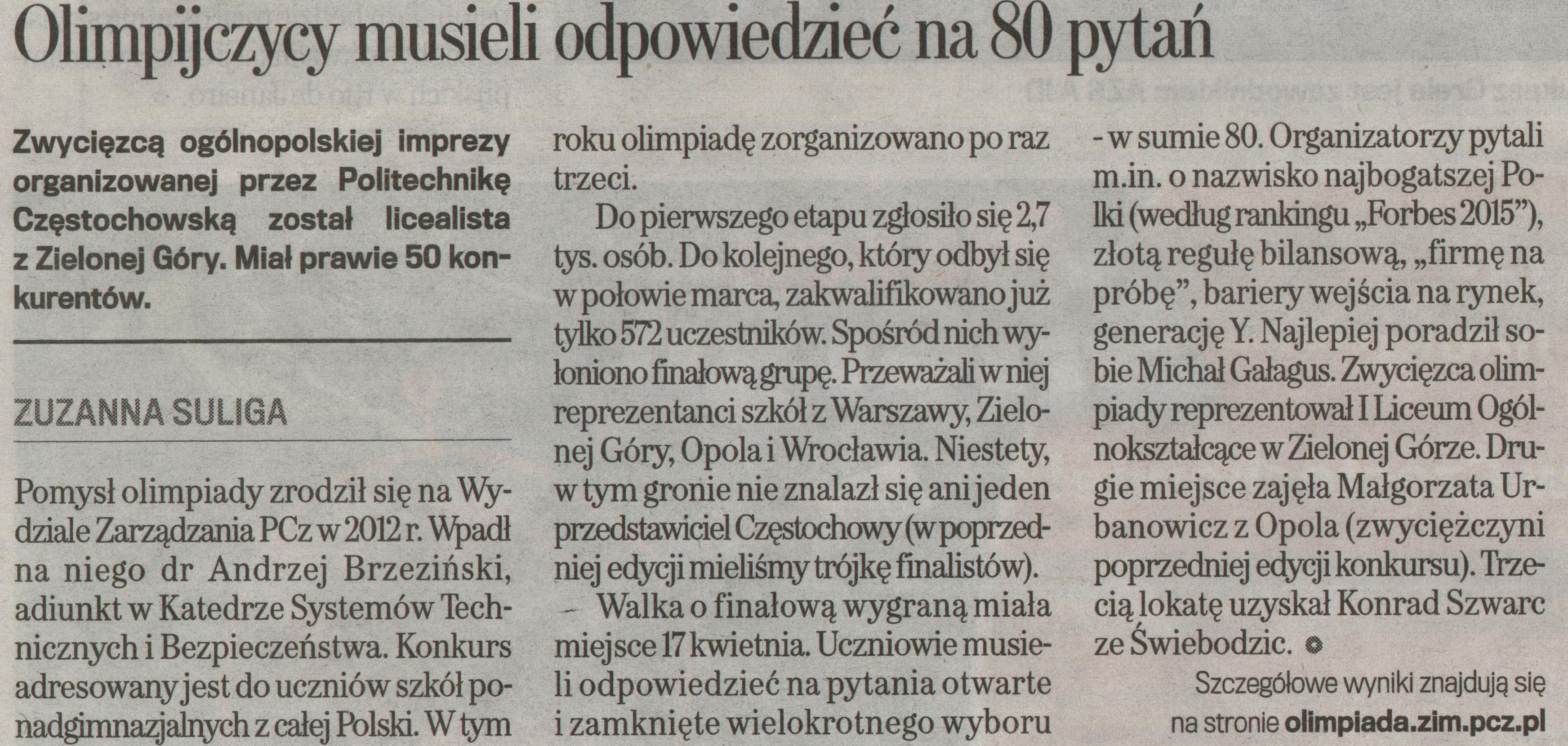 Polska Dziennik Zachodni 8.09.2015 |